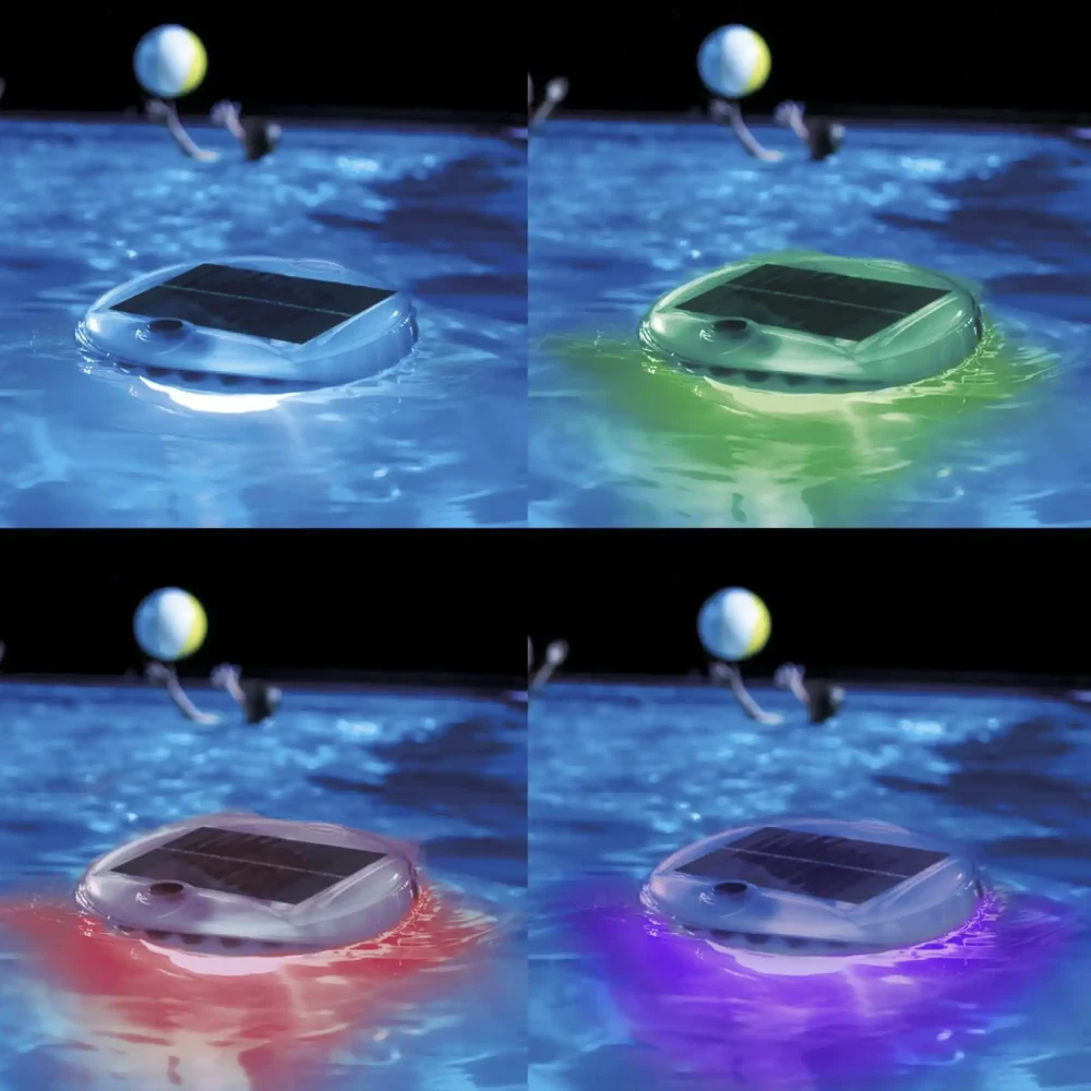 Lampă LED plutitoare, ideală pentru iluminarea decorativă a piscinei pe timp de seară. Funcționează cu alimentare solară și oferă mai multe efecte de iluminare, pentru o atmosferă plăcută în jurul apei.
