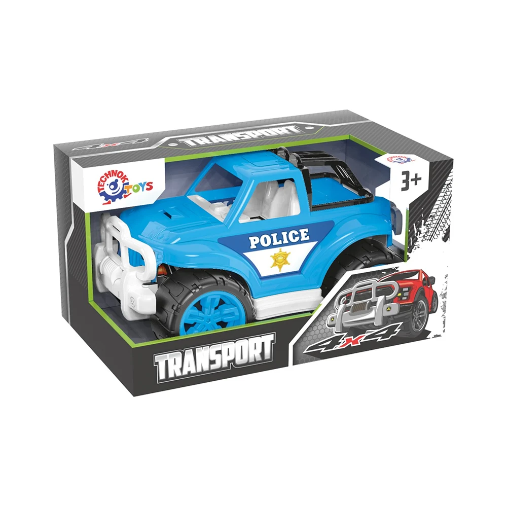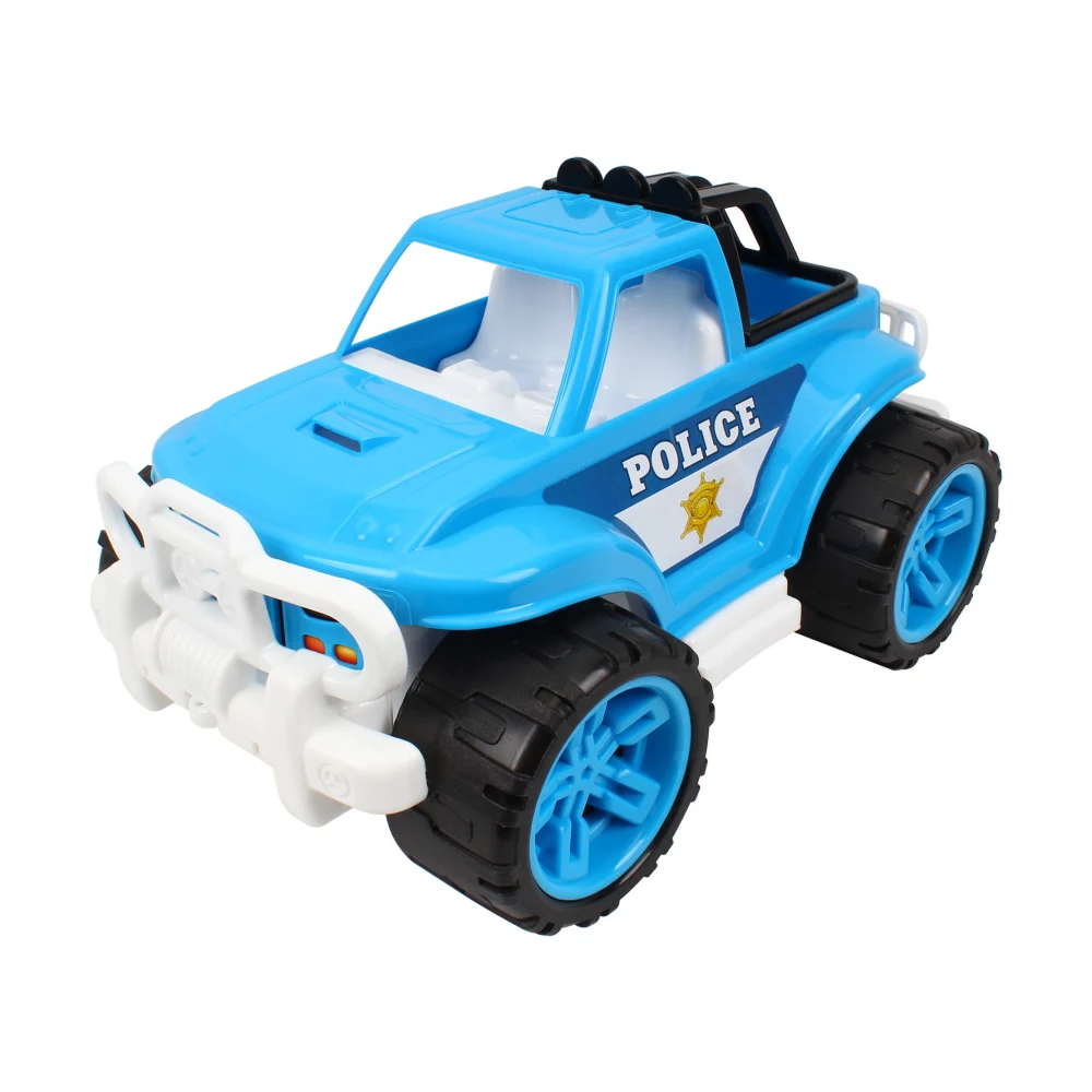Mașină tip SUV Poliție, cu design solid și detalii inspirate din vehiculele de intervenție, ideală pentru joacă activă și scenarii pline de acțiune.