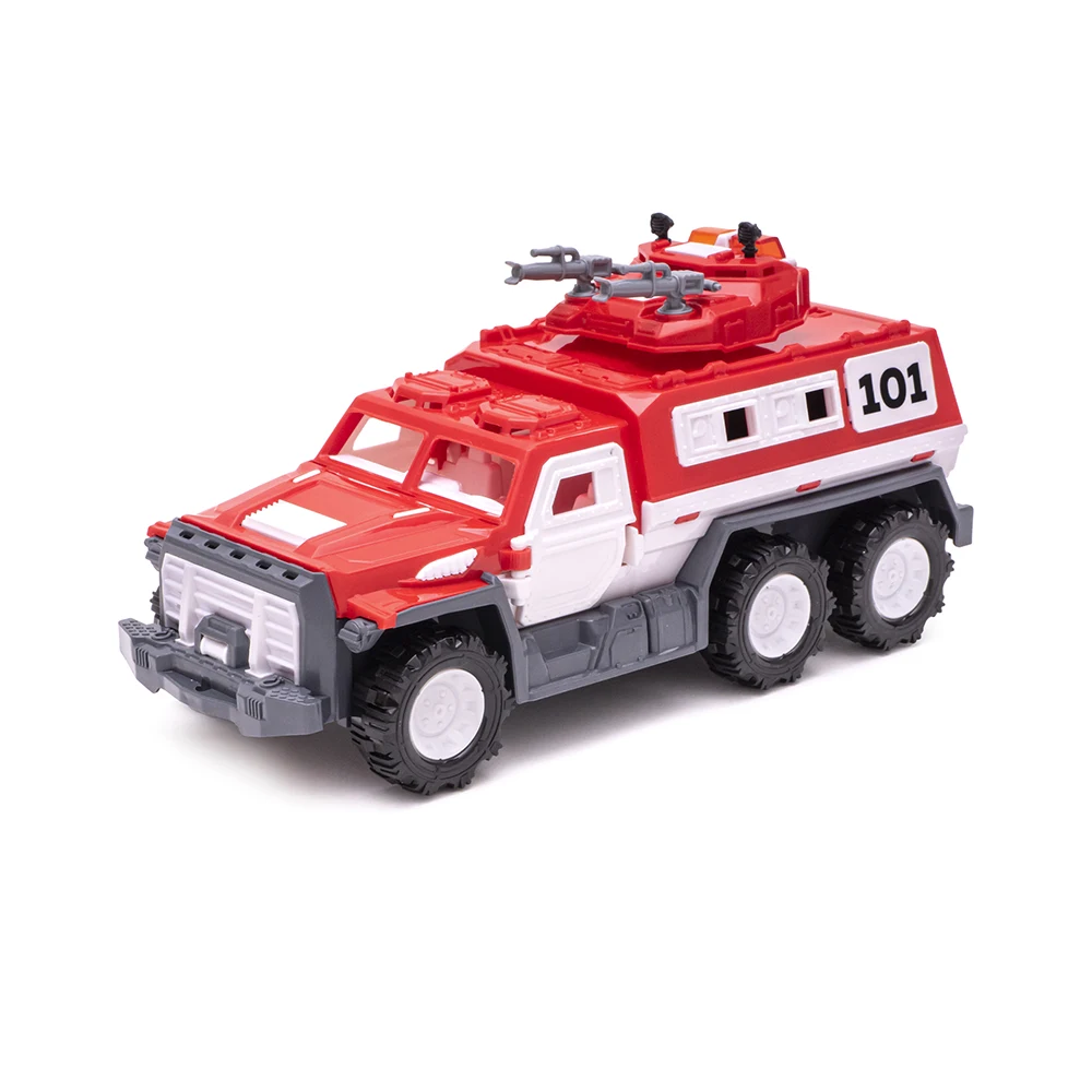 Mașină blindată de pompieri pentru copii 3+ ani, realizată din plastic rezistent și non-toxic. Dimensiuni 285 × 128 × 142 mm, ideală pentru jocuri de intervenție și salvare.