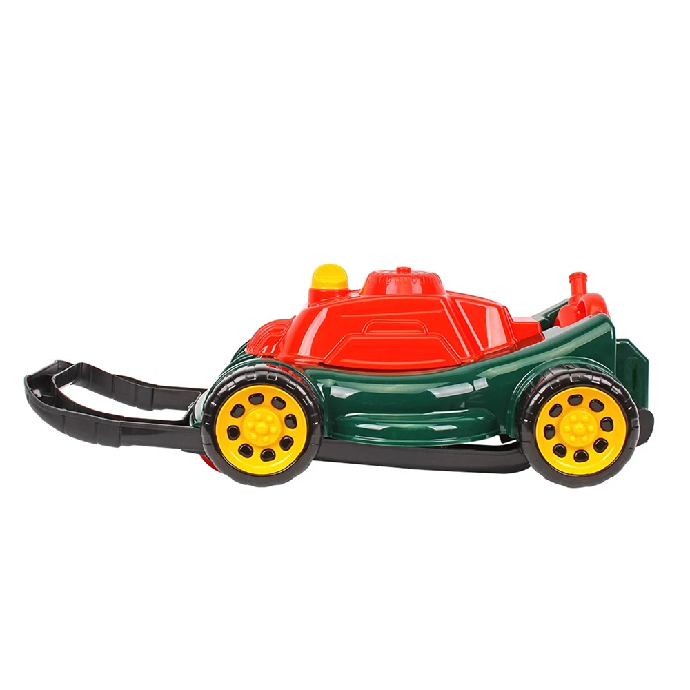 Mașină de tuns iarba pentru copii, ideală pentru jocuri de rol în aer liber. Design realist, ușor de împins, potrivită copiilor de la 1,5+ ani.