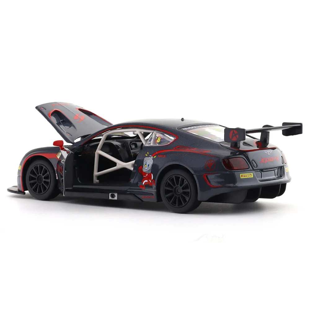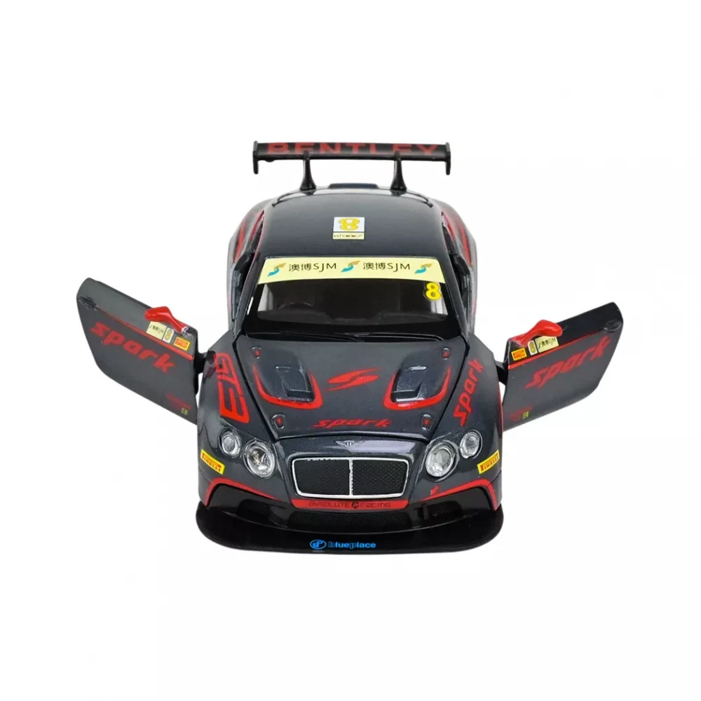 Mașină din metal Bentley Continental GT3 Concept 1:24 cu sunet, lumini, uși și capotă care se deschid, mecanism cu inerție. Ideală pentru joacă și colecție.