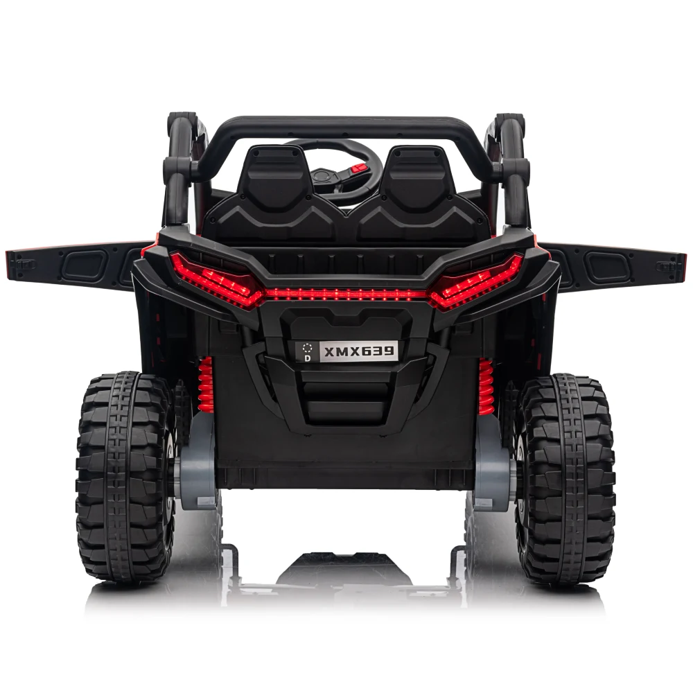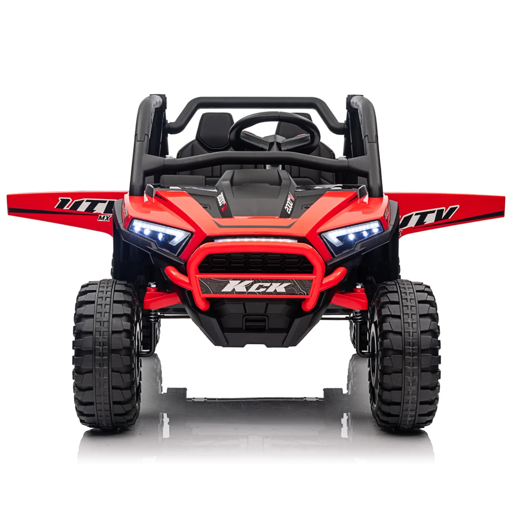 Mașina electrică pentru copii UTV impresionează prin designul sport și proporțiile bine definite, inspirate din vehiculele off-road reale. Aspectul robust, roțile mari și garda vizuală ridicată oferă un look puternic și o experiență de condus plină de energie.