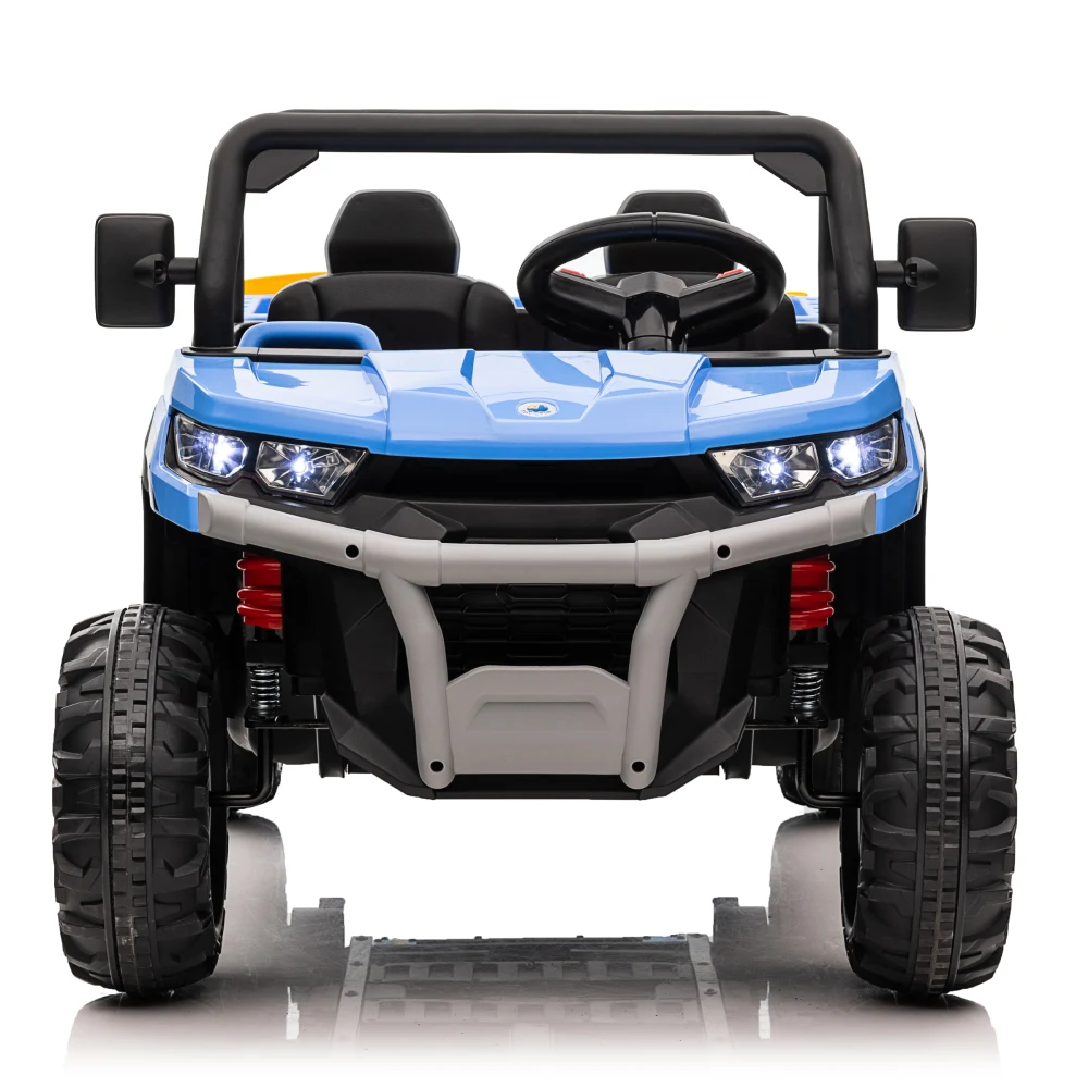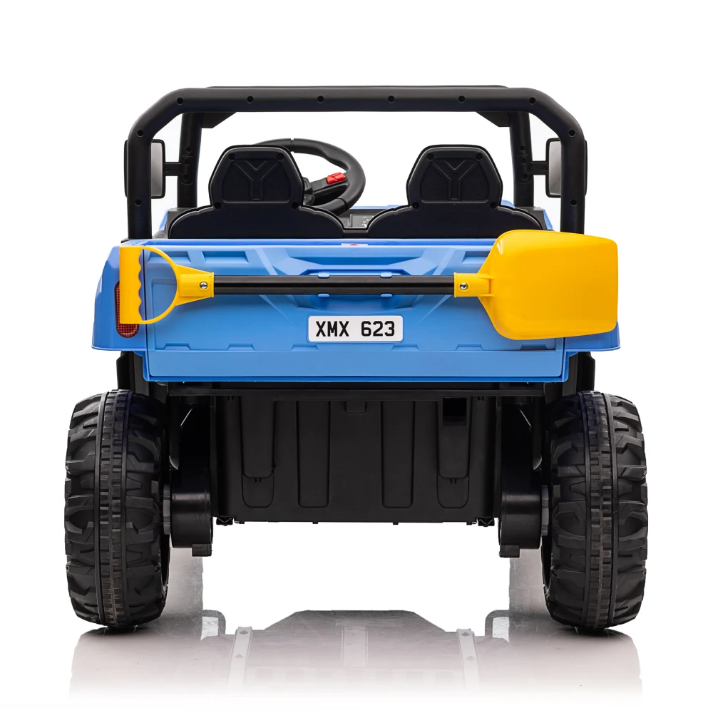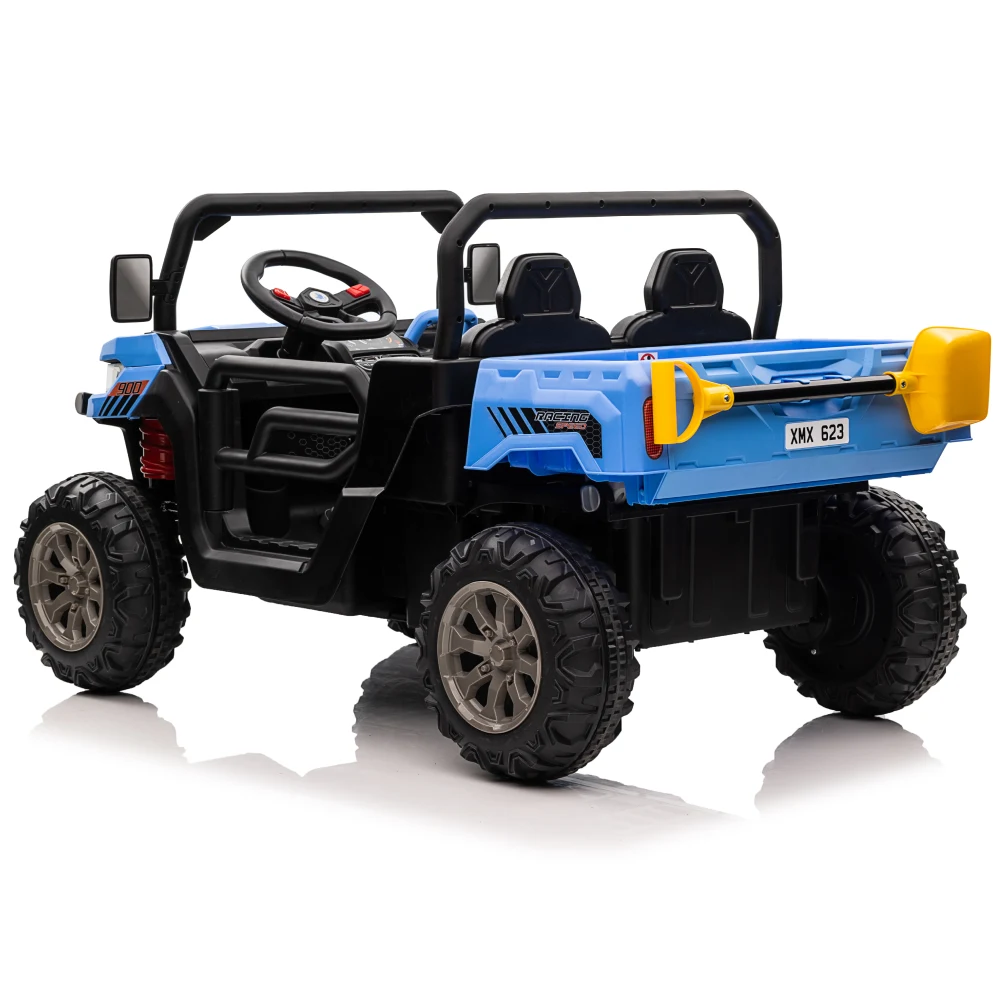 Mașină electrică pentru copii off-road cu 4 motoare, 2 locuri, roți EVA și telecomandă. Cu benă și lopată incluse pentru joacă interactivă și plimbări distractive.