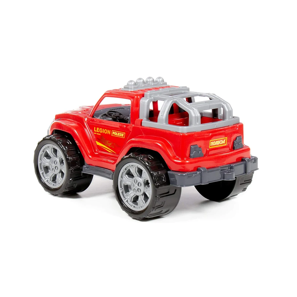 Mașina Legion este o jucărie inspirată din vehiculele off-road, concepută pentru copiii pasionați de aventură și acțiune. Designul solid, cu gardă înaltă și roți mari, permite rularea ușoară pe diferite suprafețe, atât în interior, cât și în exterior.