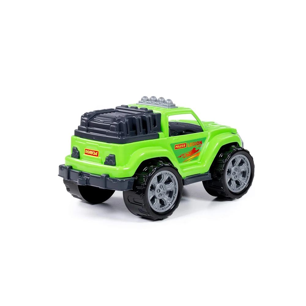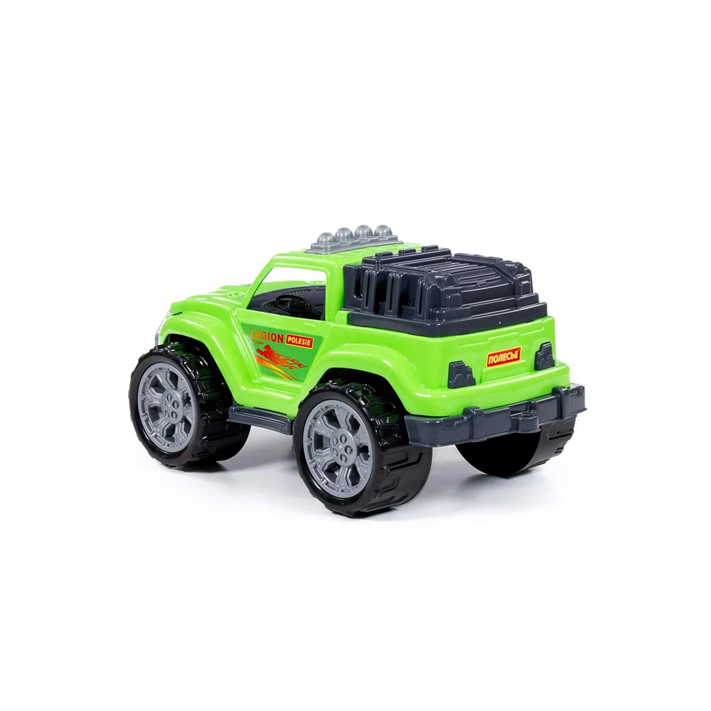 Mașina de teren Legion este o jucărie solidă, concepută pentru joacă intensă atât în interior, cât și în exterior. Designul de tip off-road, cu caroserie verde și roți mari, oferă un aspect realist și atractiv pentru copii.