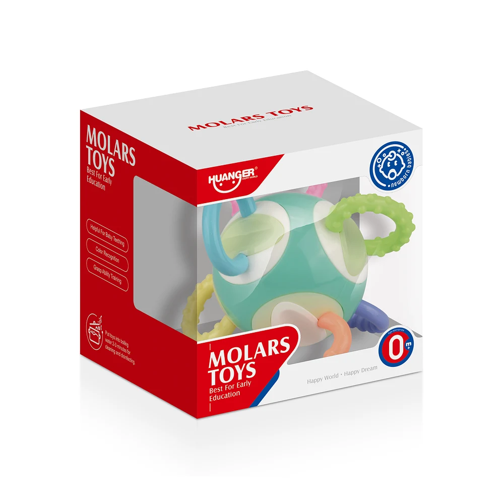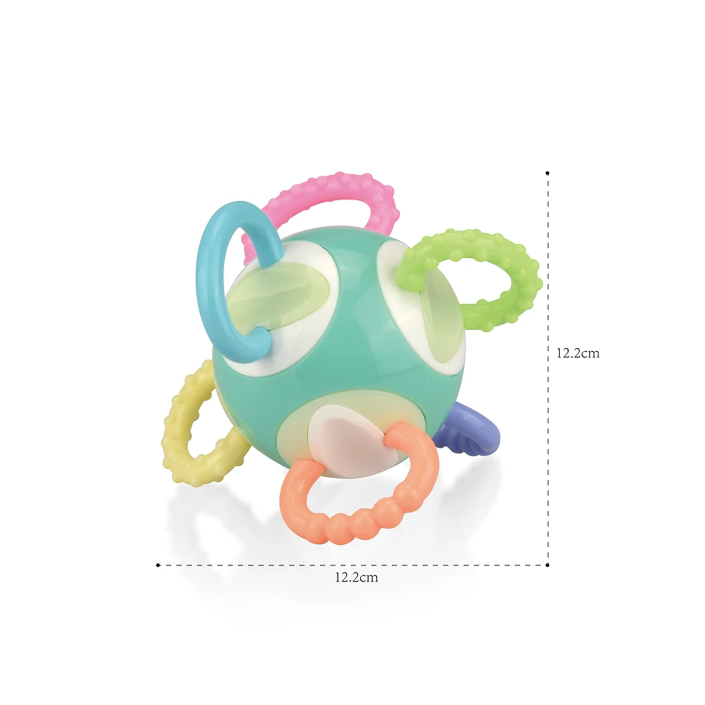 Texturile variate contribuie la stimularea simțului tactil, iar materialul sigur este potrivit pentru mestecare, ajutând la calmarea disconfortului gingival. Forma sferică și culorile pastelate încurajează coordonarea mână-ochi și joaca activă.
