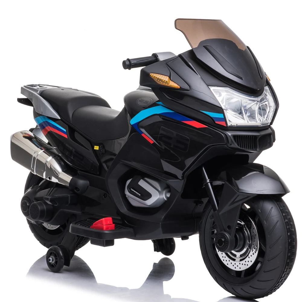 Motocicletă electrică pentru copii cu roți EVA, accelerație cu pedală și roți ajutătoare. Model stabil și distractiv, ideal pentru plimbări zilnice.