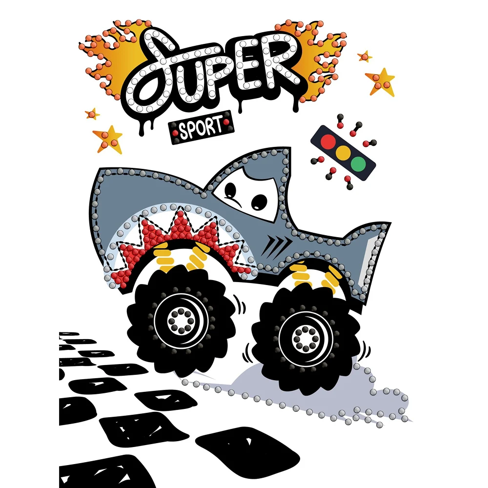 Mozaic cu diamante parțial este un set creativ ideal pentru realizarea unui tablou decorativ cu design original. Modelul cu mașină rechin oferă o activitate interesantă și ușor de realizat, potrivită pentru momente de relaxare și creativitate.