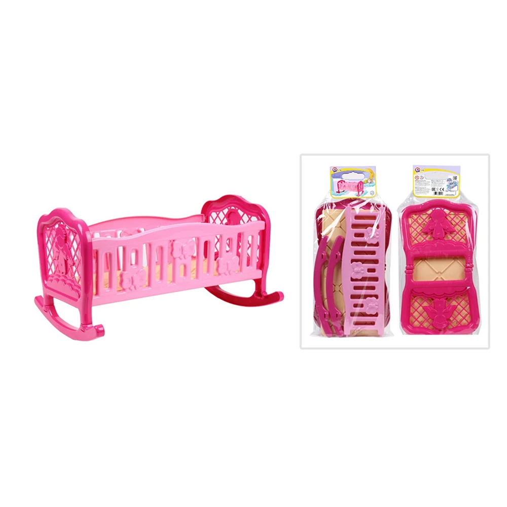 Pătuț leagăn pentru păpuși, potrivit pentru copii de 3+ ani, realizat din plastic durabil, cu dimensiuni de 560 × 260 × 45 mm, ideal pentru joaca de rol și îngrijirea păpușilor.
