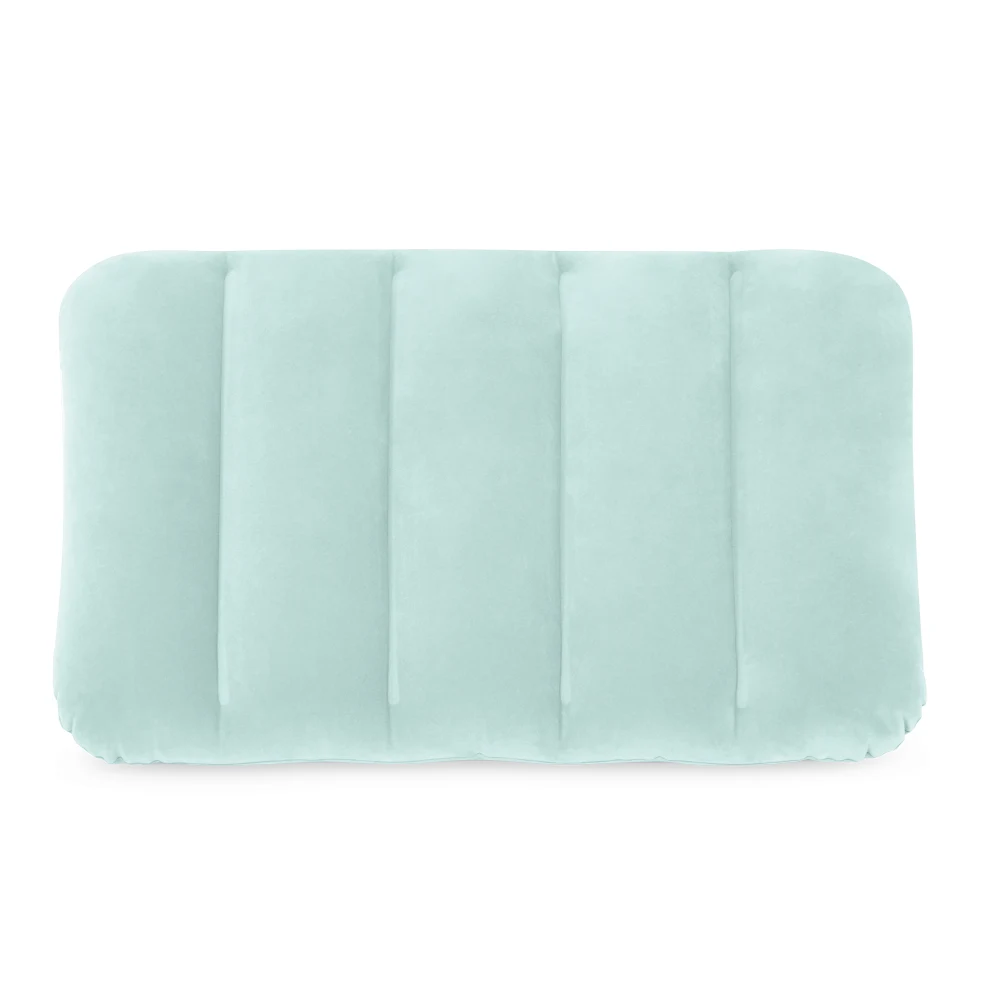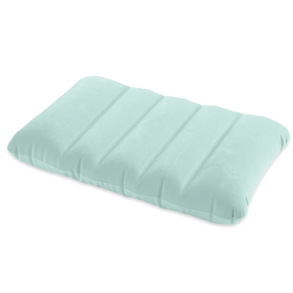 Pernă gonflabilă compactă, cu suprafață catifelată, concepută pentru confort în timpul odihnei, atât acasă, cât și în deplasări.