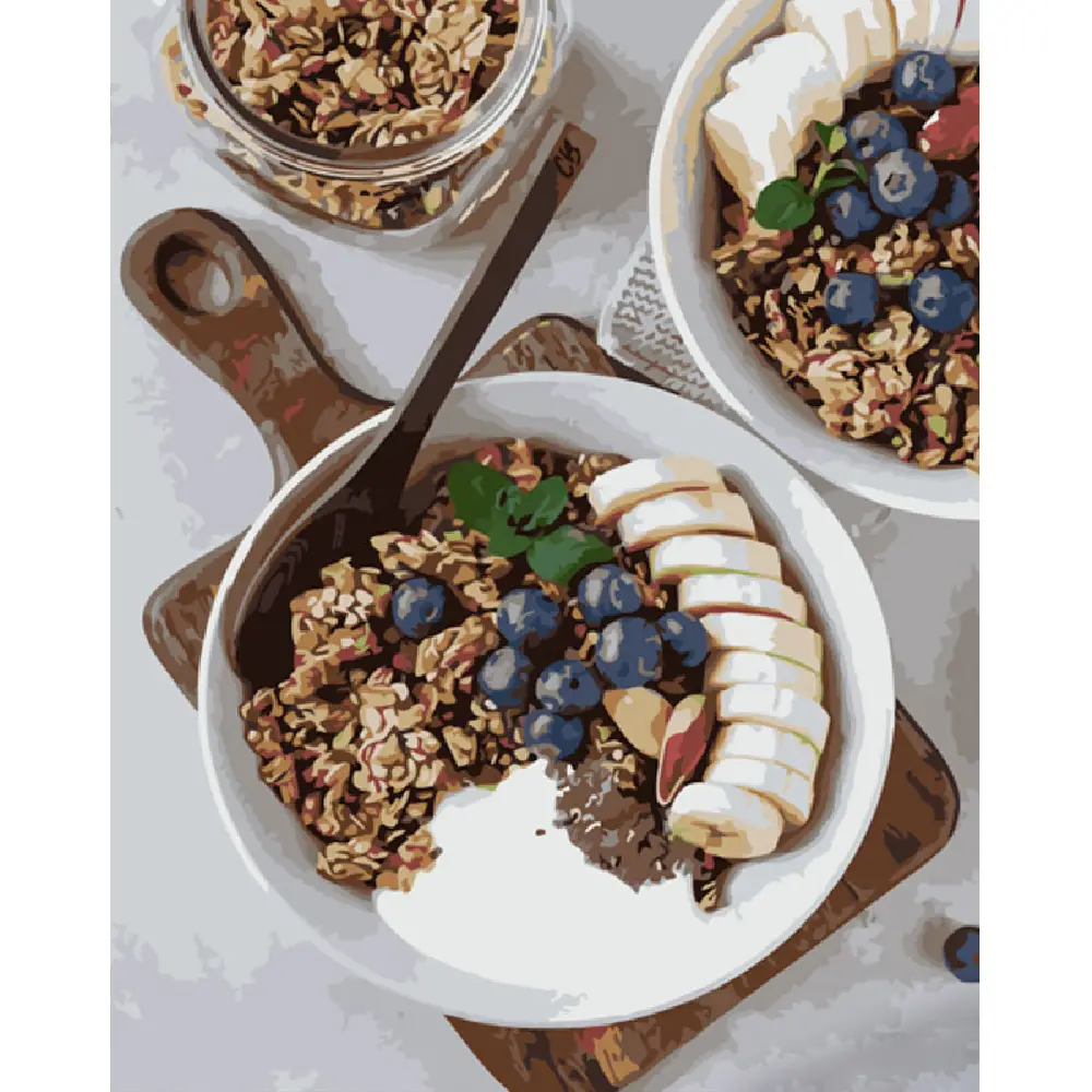 Pictura pe numere „Fulgi de ovaz cu fructe”, 40×50 cm (GS1317)
