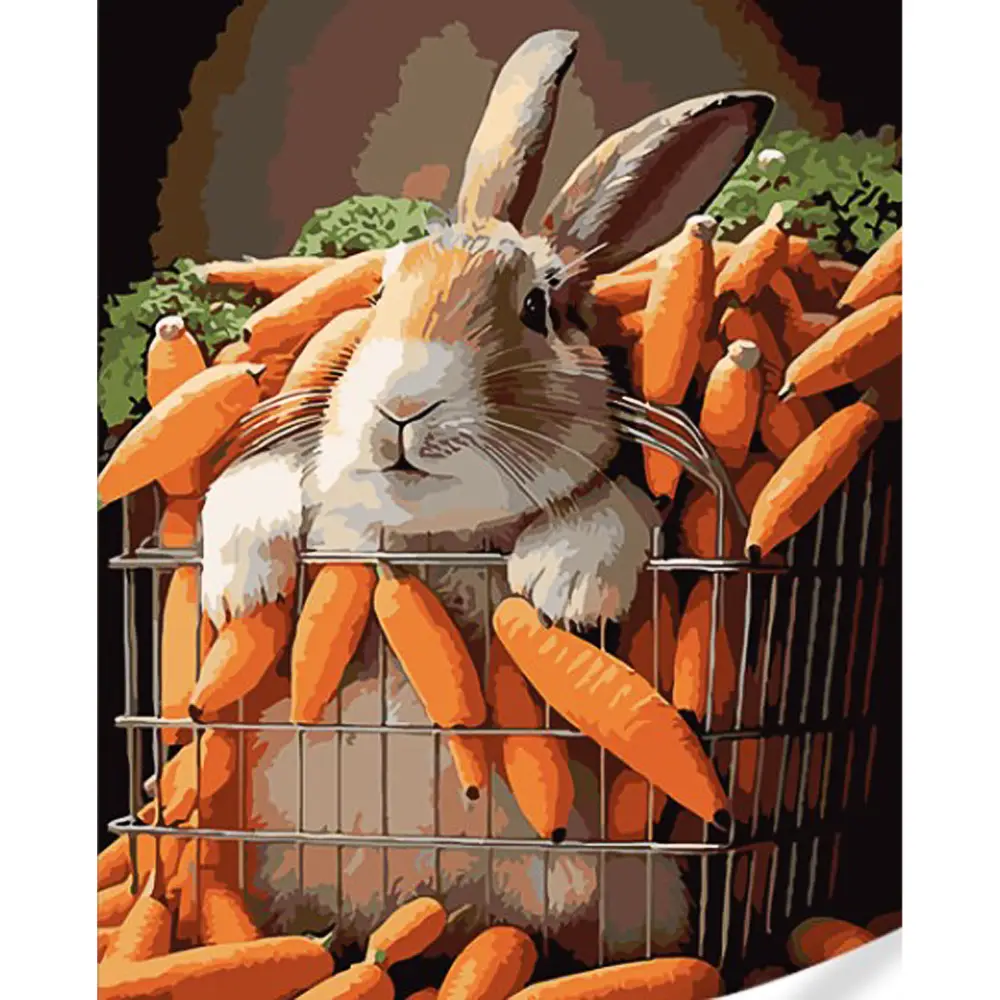 Pictura pe numere „Iepure in morcovi”, 40×50 cm (GS1627)