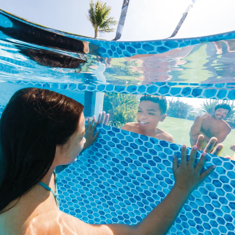 Piscina cu cadru metalic îmbină rezistența structurii metalice cu un design modern, evidențiat prin panoul panoramic Clearview integrat în peretele piscinei. Această fereastră transparentă permite vizibilitate sub nivelul apei, oferind o experiență diferită și interactivă pentru întreaga familie.