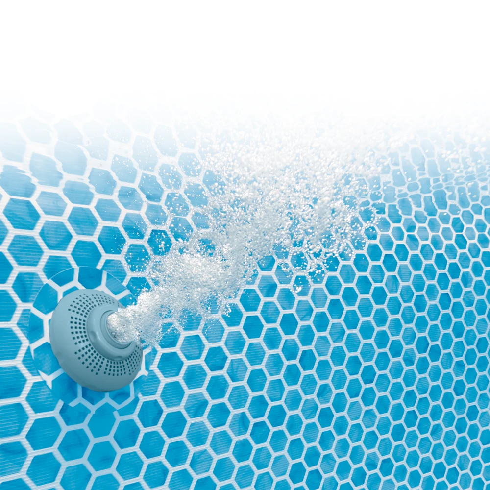 Pachetul include pompă de filtrare cu debit de 2006 L/h, care contribuie la menținerea apei curate și la o întreținere mai ușoară pe durata utilizării. Piscina este prevăzută cu supapă de golire ce permite conectarea la furtun de grădină pentru evacuarea controlată a apei la finalul sezonului.