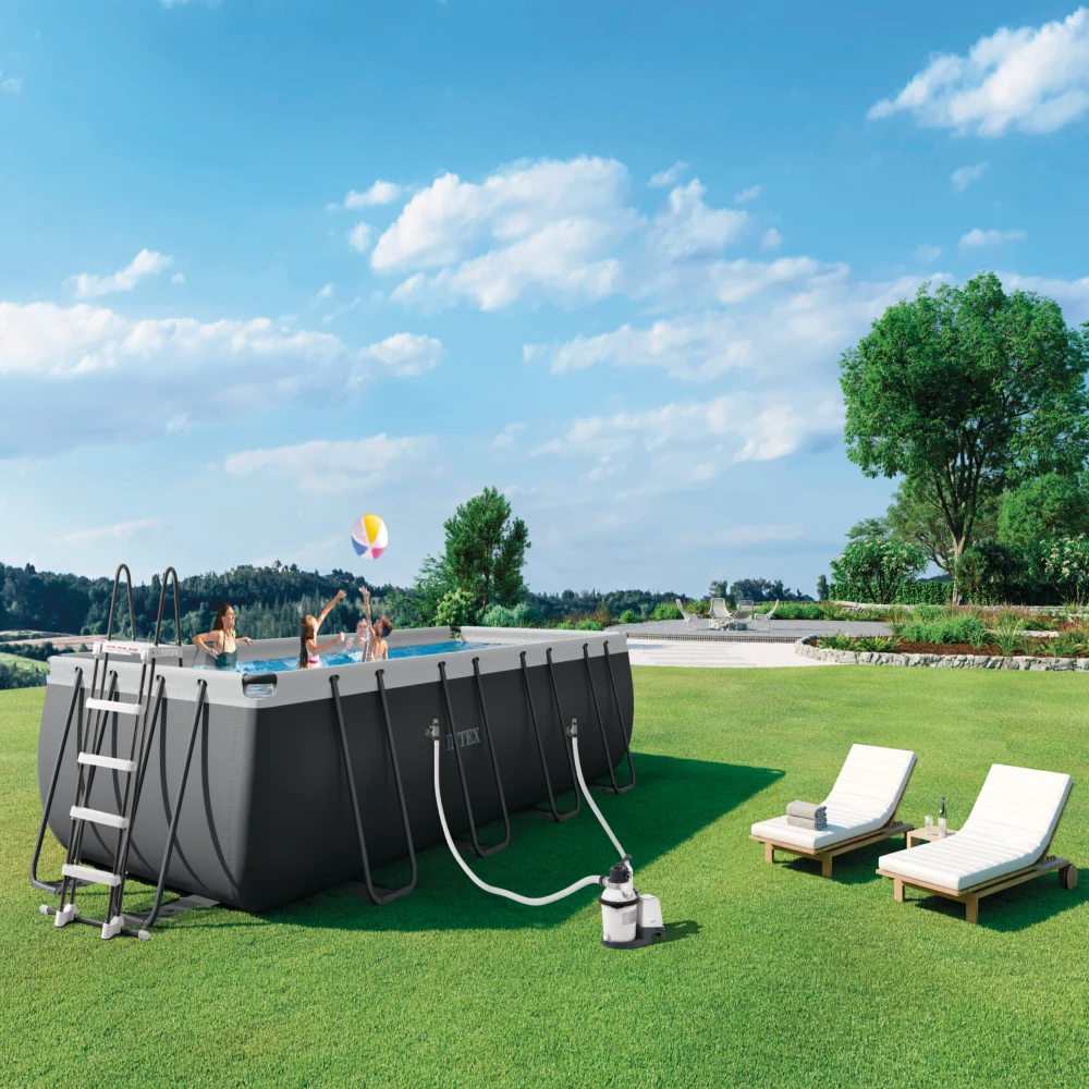 Piscină cu cadru metalic dreptunghiulară Ultra XTR, capacitate de 17203 L, filtru nisip 5700 L/h, set complet Intex, ideală pentru familie.