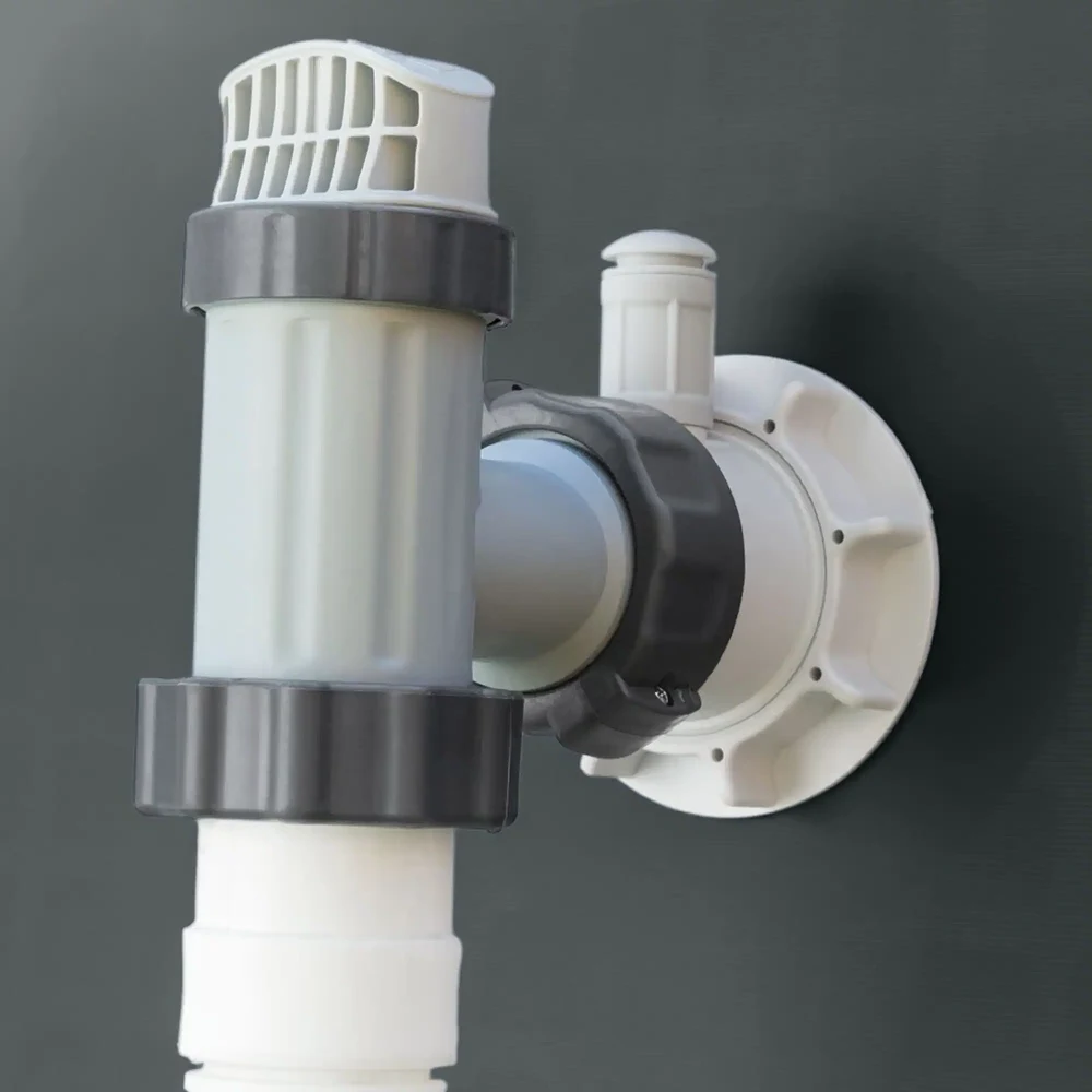 Montajul se realizează pe o suprafață plană și stabilă, fără necesitatea pregătirii speciale a terenului. Sistemul de golire permite evacuarea controlată a apei prin conectarea la furtun.