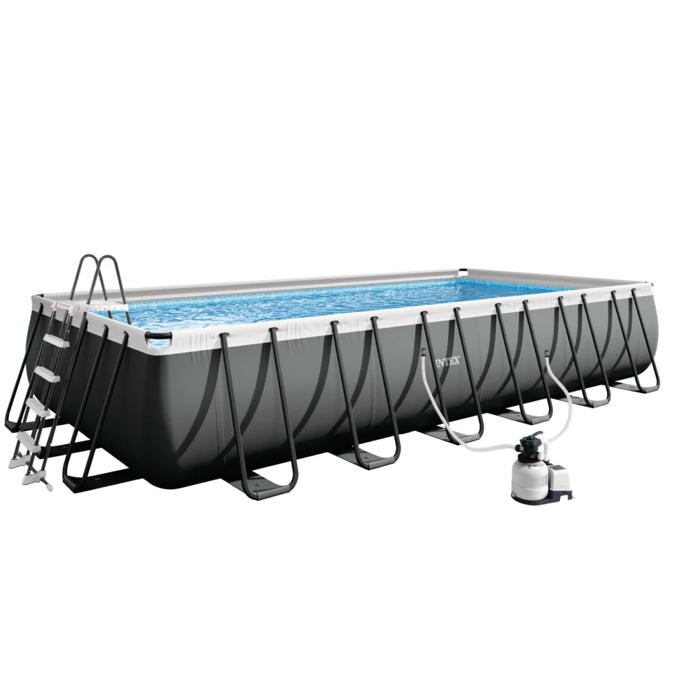 Piscina cu cadru metalic Ultra XTR Frame dreptunghiulară este un model premium, proiectat pentru utilizare intensivă și spații generoase. Cu o capacitate de 31805 L la 90% umplere, oferă condiții excelente pentru înot, joacă și relaxare în confortul propriei curți.
