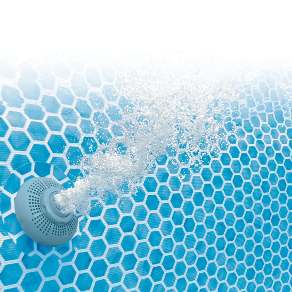 Pentru protecție și întreținere mai ușoară, setul include prelată de acoperire, care reduce pătrunderea impurităților atunci când piscina nu este folosită, și protecție pentru baza piscinei, destinată izolării și protejării fundului de contactul direct cu solul.