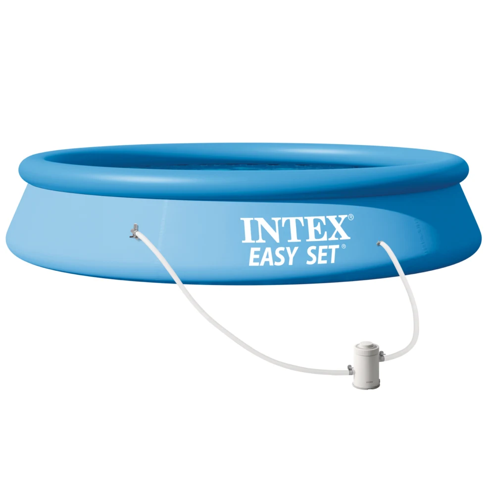 Piscina Easy Set este un model autostabil, ușor de instalat, ideal pentru utilizare sezonieră în curte sau grădină. Montajul este simplu și rapid: se așază pe o suprafață plană, se umflă inelul superior și se umple cu apă. Pe măsură ce nivelul apei crește, inelul se ridică, iar pereții piscinei se stabilizează automat.