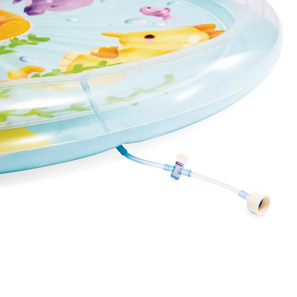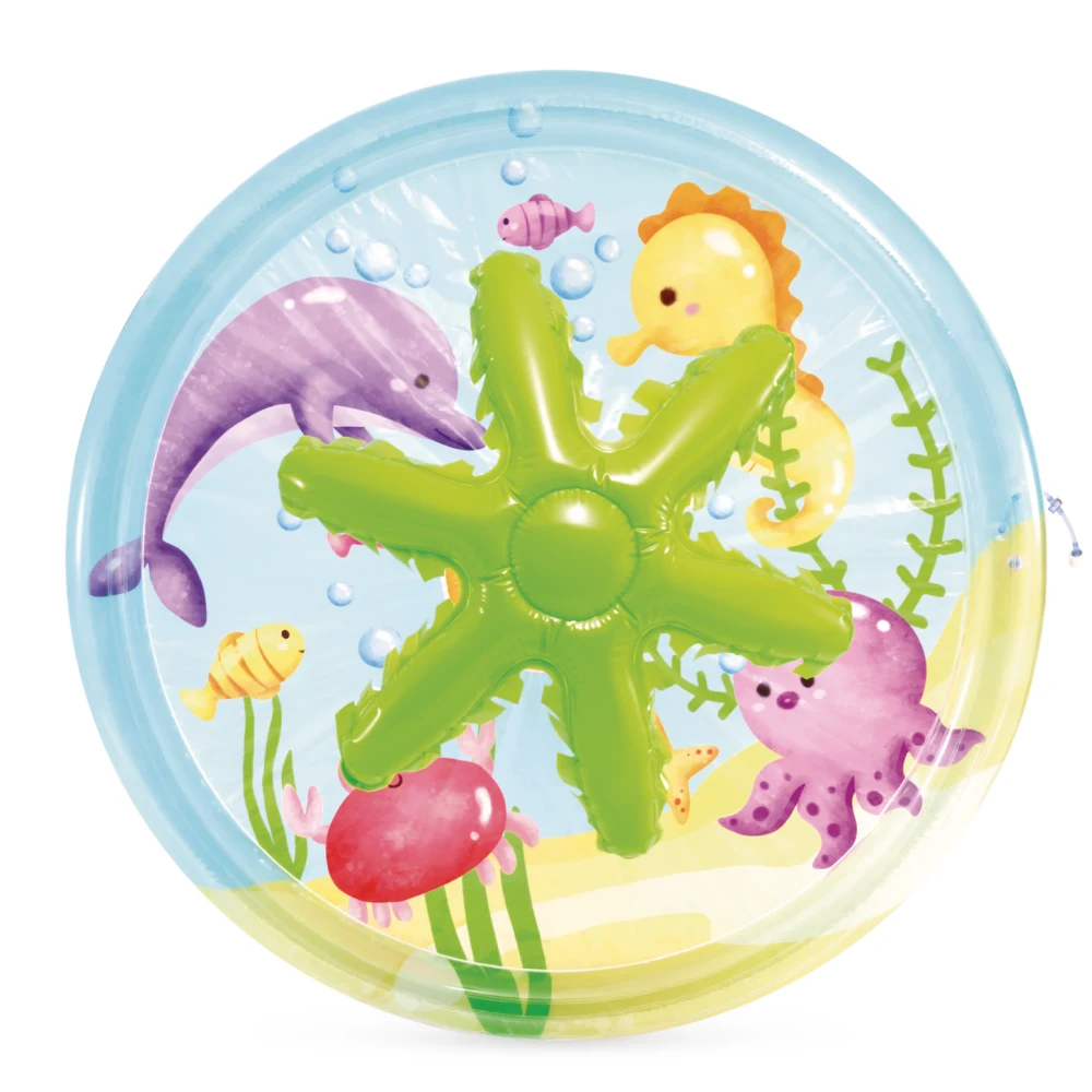 Apa este dispersată uniform pe margini, creând un efect de fântână arteziană plăcut și sigur pentru cei mici. Designul colorat cu personaje marine stimulează imaginația, iar baza gonflabilă oferă confort în timpul jocului.