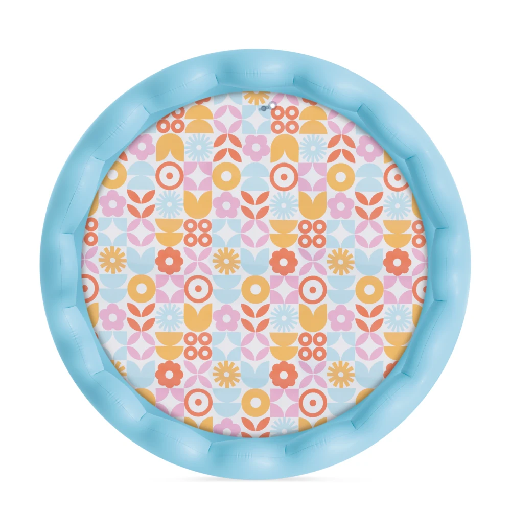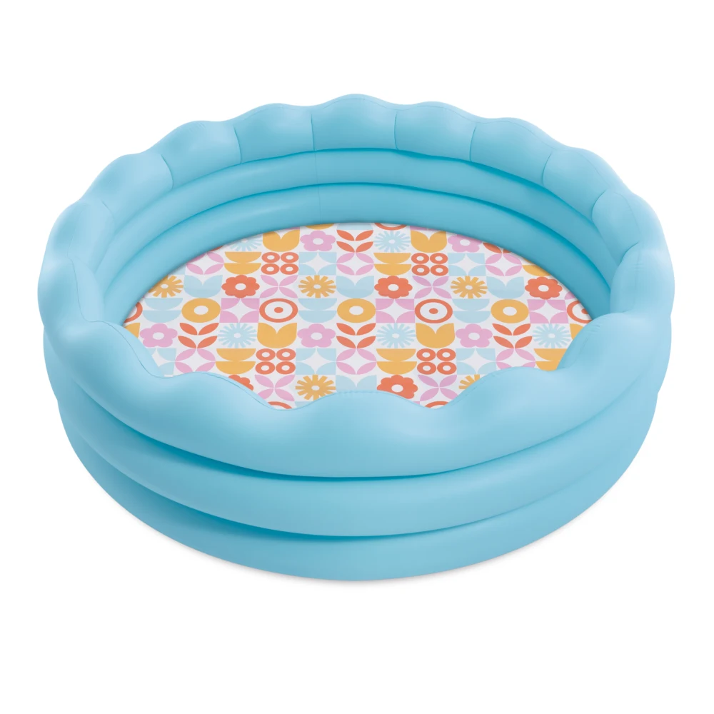 Modelul este prevăzut cu margine ondulată, formată din inele gonflabile late, care asigură confort și susținere suplimentară în timpul utilizării. Capacitatea de 575 litri permite umplerea rapidă și creează un spațiu suficient pentru bălăceală și jocuri cu apă. Fundul piscinei are un design floral colorat, ce oferă un aspect atractiv și plăcut vizual.
