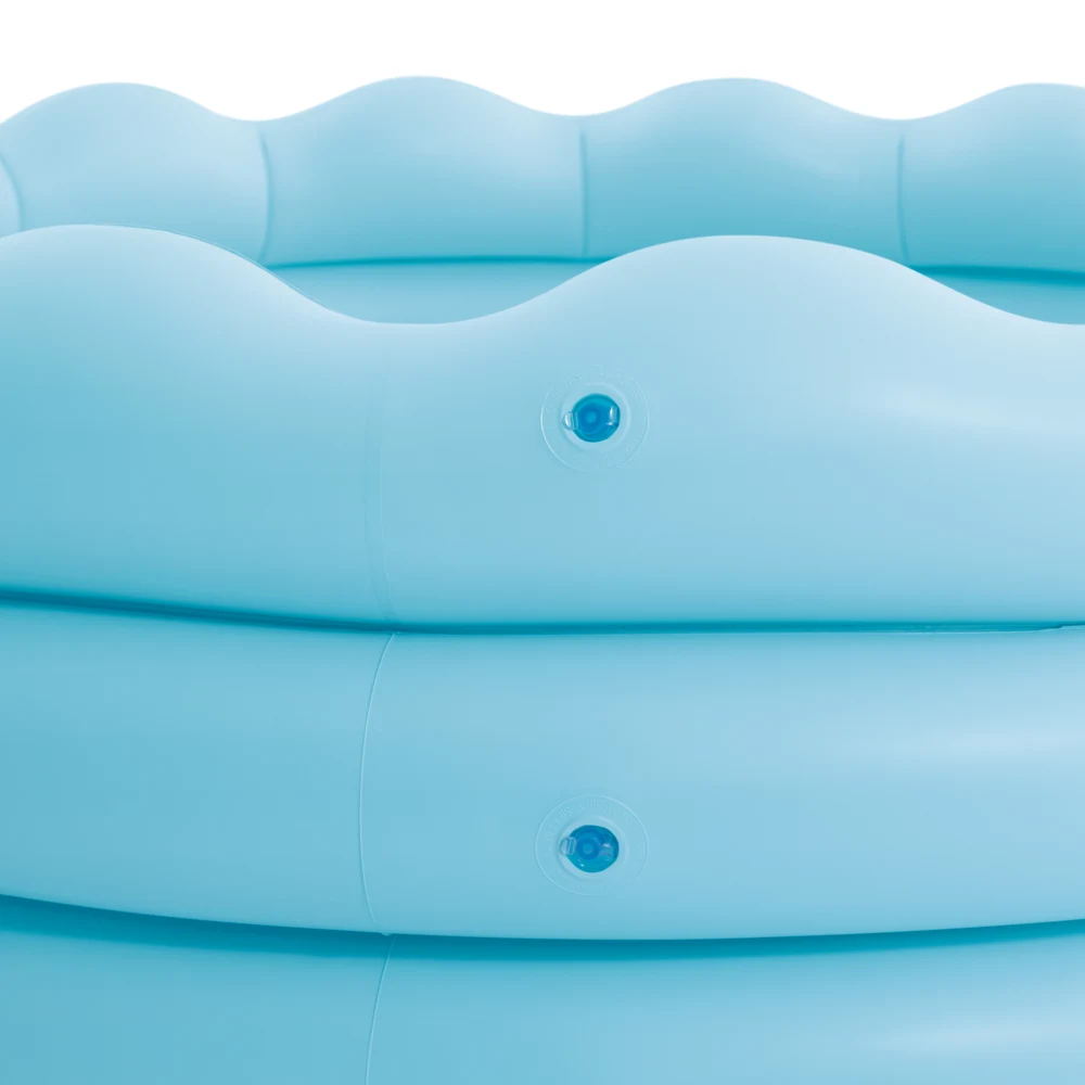 Piscină gonflabilă pentru copii, ideală pentru joaca și răcorirea în zilele călduroase de vară. Oferă spațiu generos pentru distracție în curte sau grădină, are margine ondulată pentru un plus de confort și este prevăzută cu robinet de golire pentru evacuarea ușoară a apei. Potrivită pentru copii de la 3 ani.