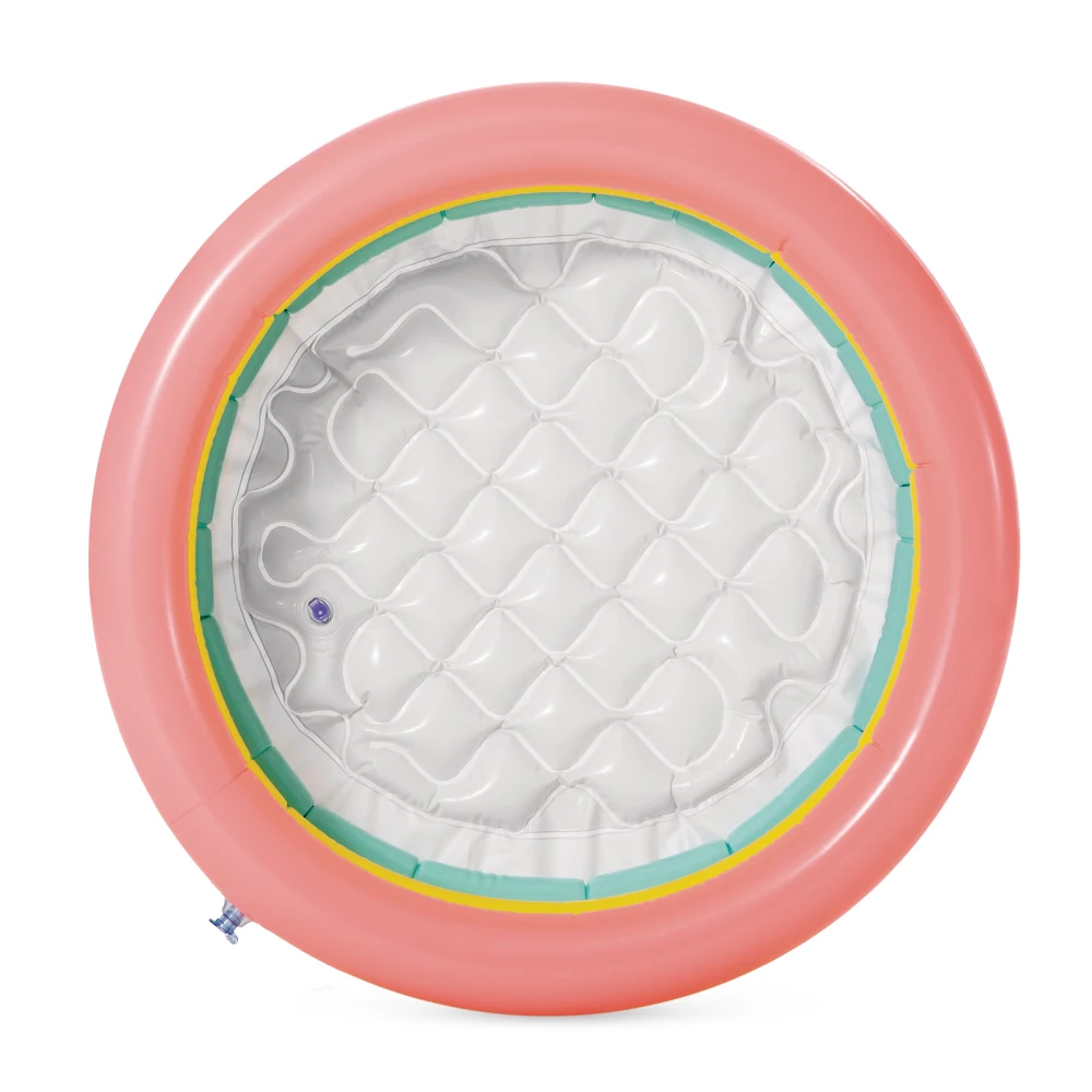 Piscină gonflabilă compactă, ideală pentru primii pași în joaca cu apă. Modelul Sunset Glow are trei inele colorate și fund moale gonflabil, oferind confort și siguranță pentru copiii între 1 și 3 ani în zilele călduroase.