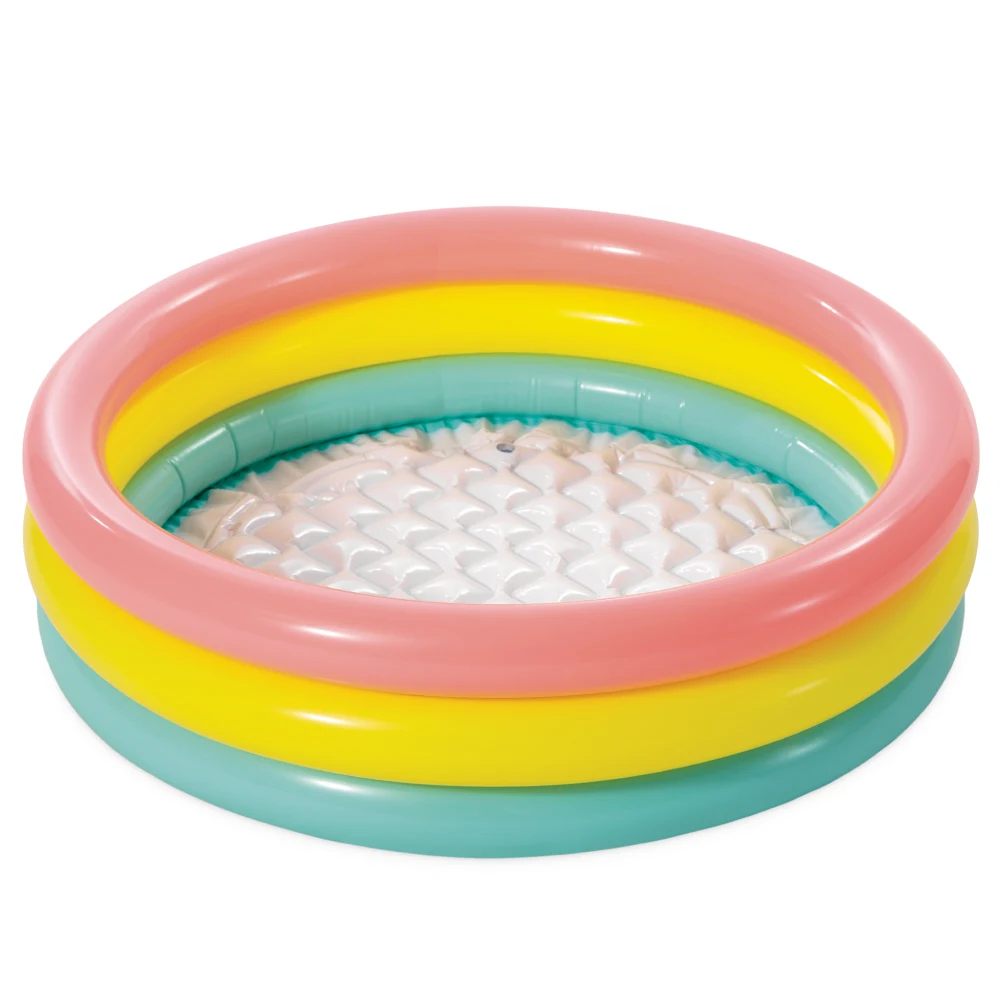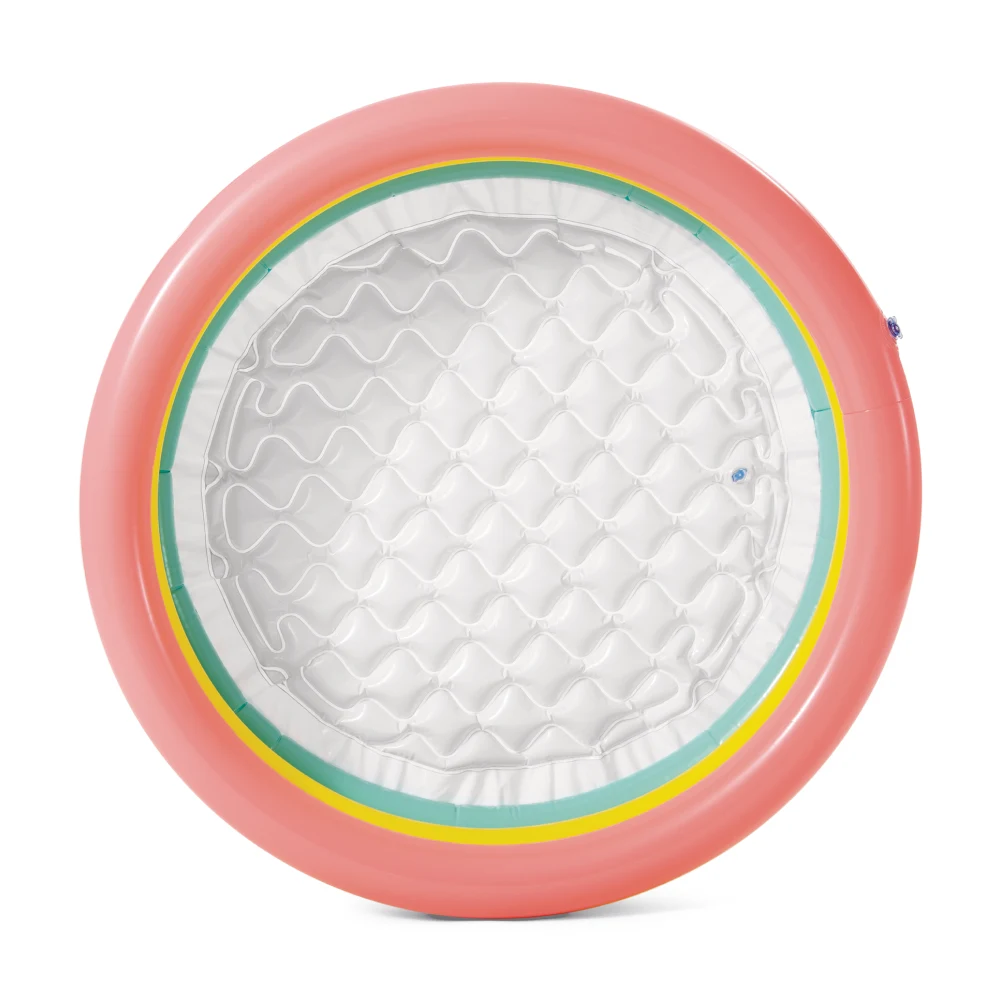 Piscină gonflabilă pentru copii Sunset Glow cu bază gonflabilă, transformă zilele călduroase în momente de veselie și joacă în aer liber. Cele trei inele colorate și fundul moale creează un spațiu confortabil și sigur, perfect pentru răcorire și distracție în grădină sau curte, potrivită pentru copii între 1 și 3 ani.
