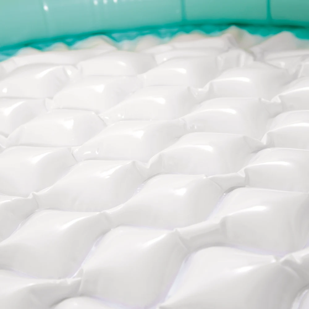 Modelul este prevăzut cu bază gonflabilă moale, care oferă un plus de confort și protecție în timpul utilizării. Pereții formați din trei camere de aer asigură stabilitate și susținere, iar capacitatea de aproximativ 56 L este potrivită pentru joacă și răcorire în siguranță pentru copiii între 1 și 3 ani.
