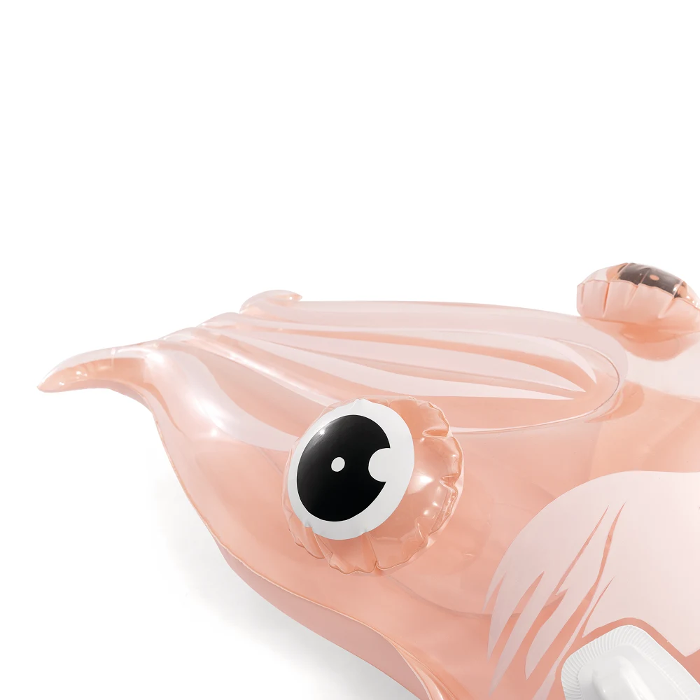 Plută gonflabilă în formă de calmar, concepută pentru distracție și relaxare pe apă. Designul generos și mânerele integrate oferă stabilitate și control sporit în timpul utilizării.