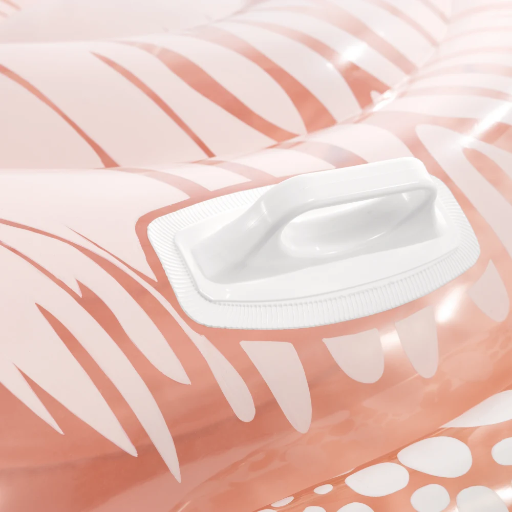 Construcția solidă și mânerele laterale facilitează urcarea pe plută și menținerea echilibrului pe apă. Dimensiunile generoase oferă spațiu suficient pentru o poziție stabilă, iar materialul rezistent este potrivit pentru utilizare frecventă în sezonul cald.