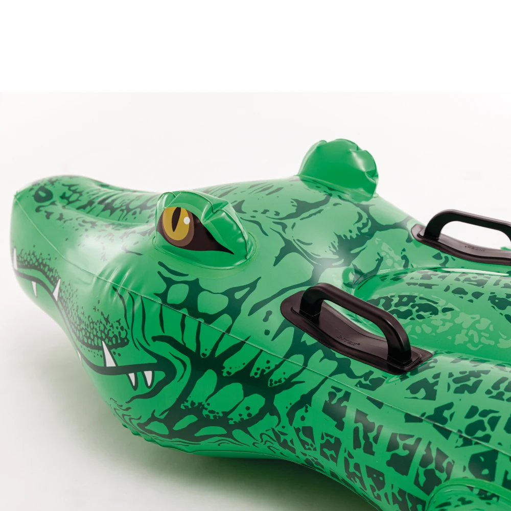 Plută gonflabilă de mari dimensiuni, cu design realist de crocodil și mânere rezistente, ideală pentru joacă și relaxare pe apă. Oferă spațiu generos și stabilitate bună în piscină sau la plajă.