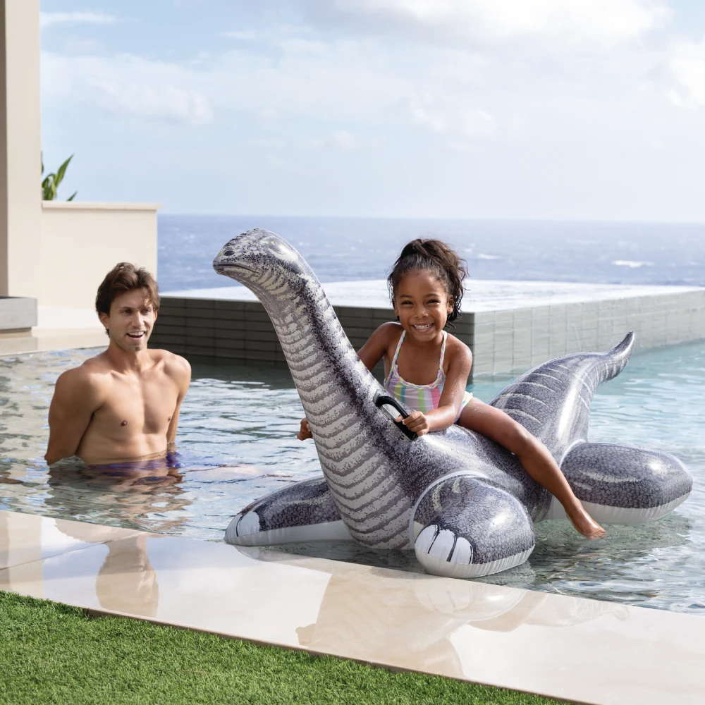 Pluta gonflabilă Dinozaur Brontozaur este concepută pentru distracție pe apă, având o formă stabilă și un design atractiv inspirat din lumea dinozaurilor. Zona de ședere este bine conturată, iar mânerele integrate permit copilului să se țină ferm în timpul utilizării.