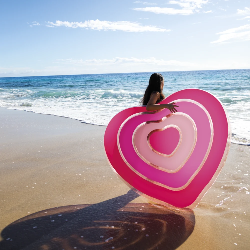 Pluta gonflabilă în formă de inimă este creată pentru momente de relaxare și voie bună la piscină, la mare sau pe lac. Forma sa distinctivă și culorile vii o transformă într-un accesoriu vizual de impact, perfect pentru fotografii de vacanță și momente petrecute pe apă.
