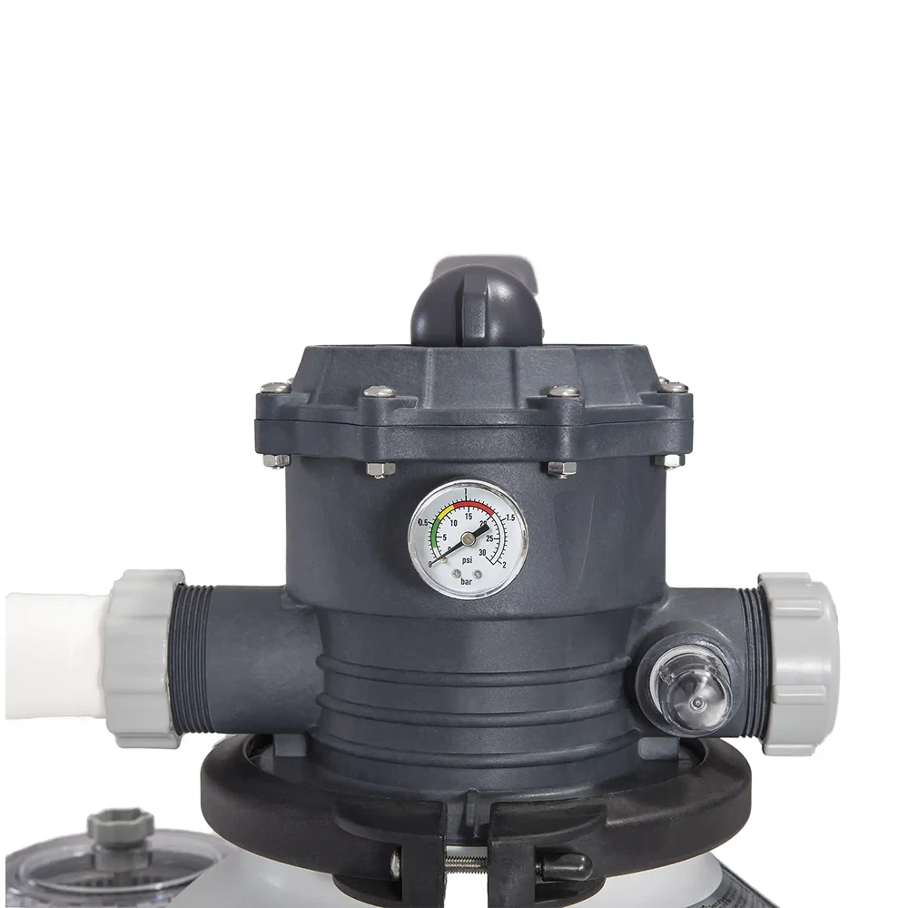 Pompă de filtrare cu nisip destinată piscinelor supraterane, cu debit de 7 900 l/oră și rezervor pentru 23 kg de nisip. Asigură o filtrare eficientă și constantă a apei, contribuind la menținerea unei ape limpezi și curate pe tot parcursul sezonului. Sistemul este echipat cu vană cu 6 căi pentru operare simplă și întreținere ușoară, funcționând la 220–240 V.