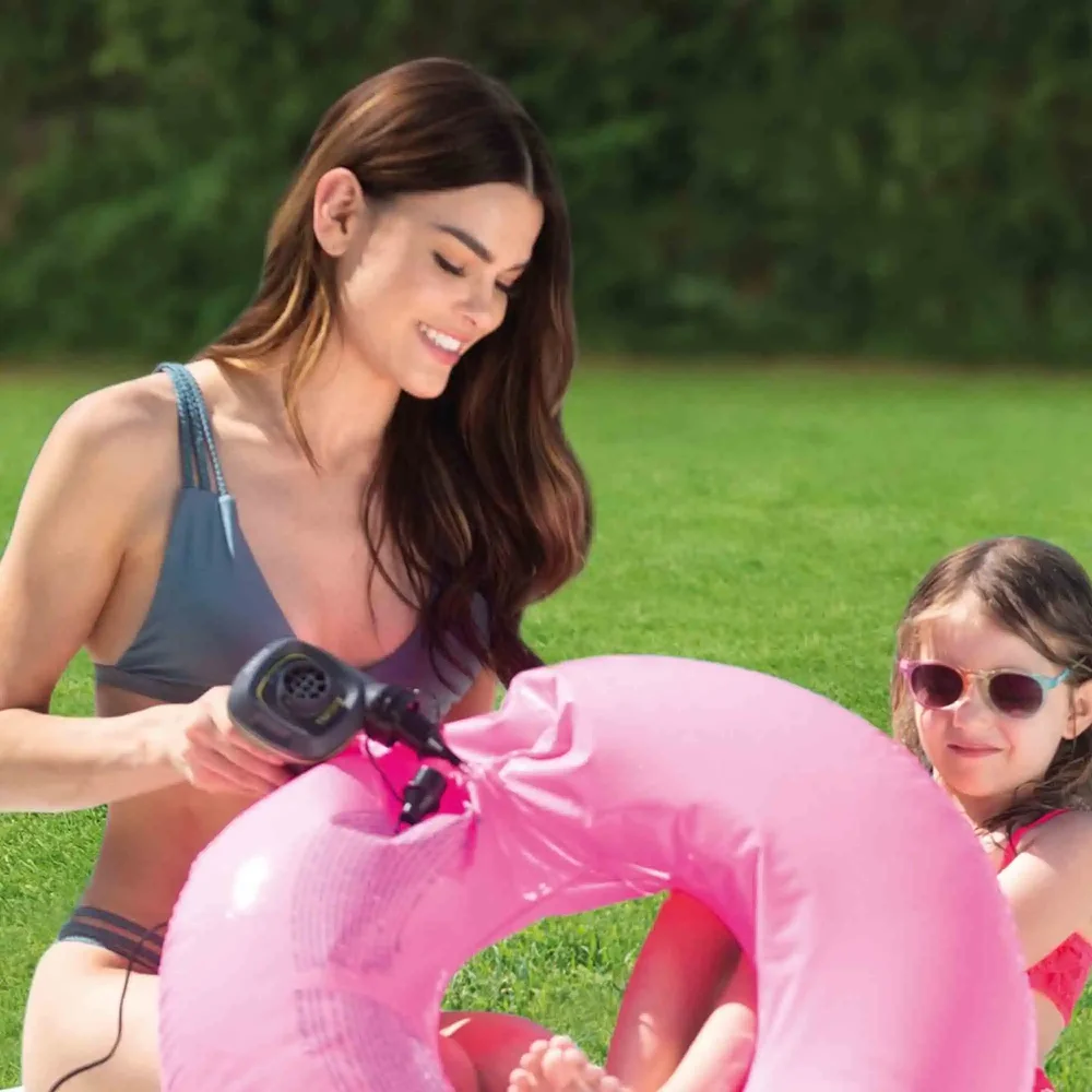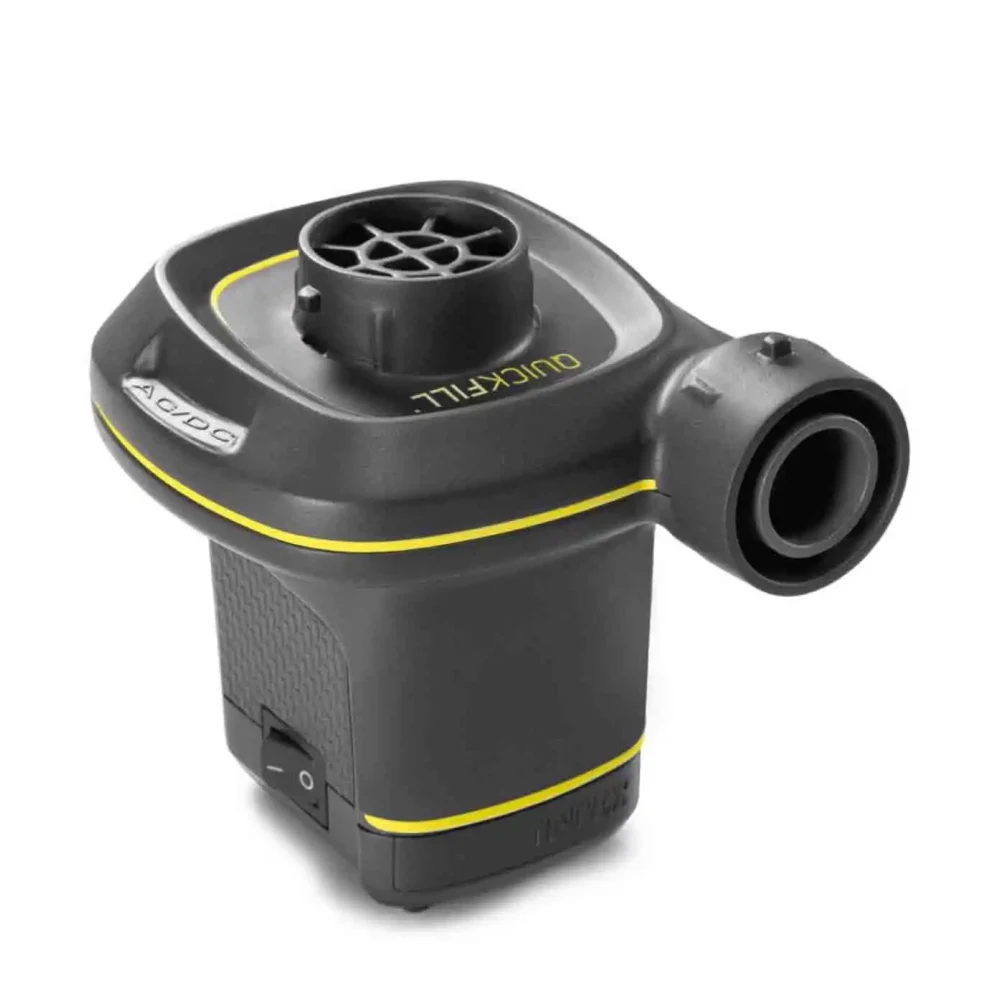 Pompă de aer electrică pentru umflat și dezumflat produse gonflabile, cu debit de 480 l/min, ideală pentru saltele gonflabile, piscine, colaci, bărci sau jucării de apă. Modelul QuickFill AC/DC funcționează atât la priză 220–240V, cât și la 12V (brichetă auto), oferind umflare rapidă și eficientă oriunde ai nevoie. Include 3 duze pentru compatibilitate cu diferite supape.