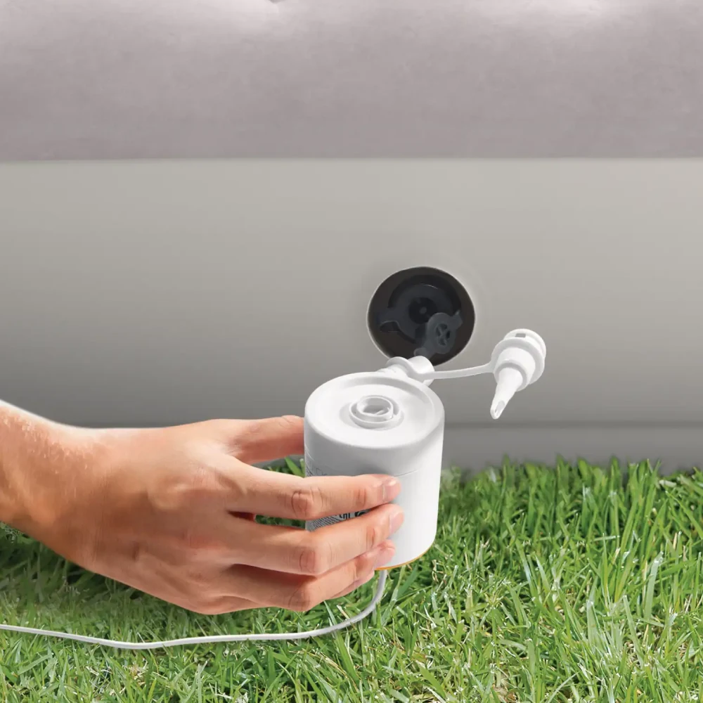 Designul compact și greutatea redusă o fac ușor de transportat în bagajul de vacanță, la camping sau la piscină. Dispune de două funcții – umflare și dezumflare – pentru pregătirea rapidă a saltelelor gonflabile, colacilor, pernelor sau altor articole cu supape compatibile.