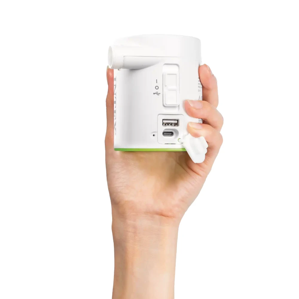 Se încarcă prin USB 5V (2A), fiind compatibilă cu adaptoare USB, laptopuri sau baterii externe. Cu un debit de aer de până la 200 l/min, asigură o umflare eficientă într-un timp scurt. Dimensiunile compacte și greutatea redusă o fac ușor de transportat în bagaj sau rucsac.