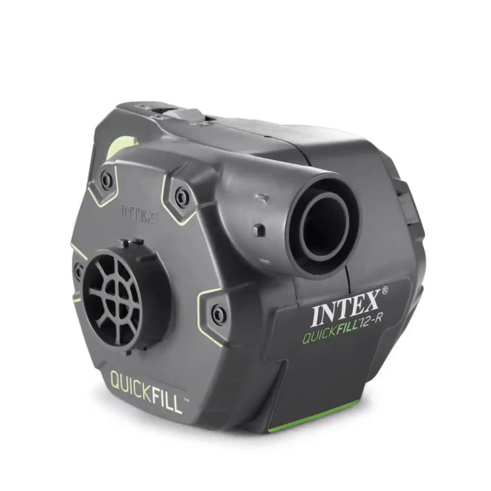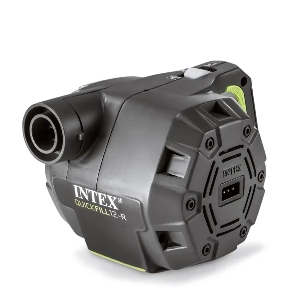 Pompă electrică reîncărcabilă QuickFill, concepută pentru umflarea și dezumflarea rapidă a produselor gonflabile de dimensiuni medii și mari. Echipată cu acumulator integrat, oferă libertate de utilizare fără cablu, fiind ideală pentru camping, vacanțe sau utilizare în exterior.