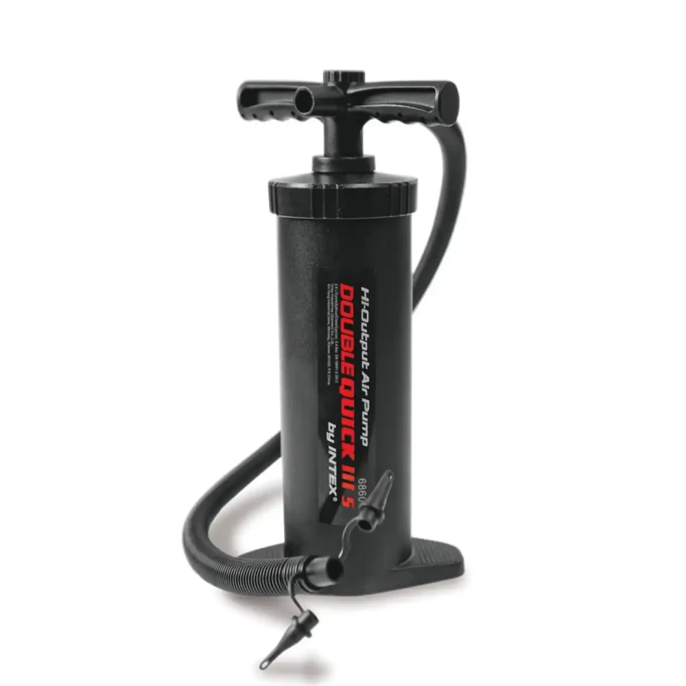 Pompă manuală de aer Double Quick III S, 37 cm, este concepută pentru umflarea eficientă a produselor gonflabile de dimensiuni medii și mari – saltele gonflabile, bărci, piscine supraterane, colace sau alte accesorii pentru apă și camping. Datorită sistemului cu dublă acțiune, pompa introduce aer atât la împingere, cât și la tragere, reducând considerabil timpul necesar umflării.