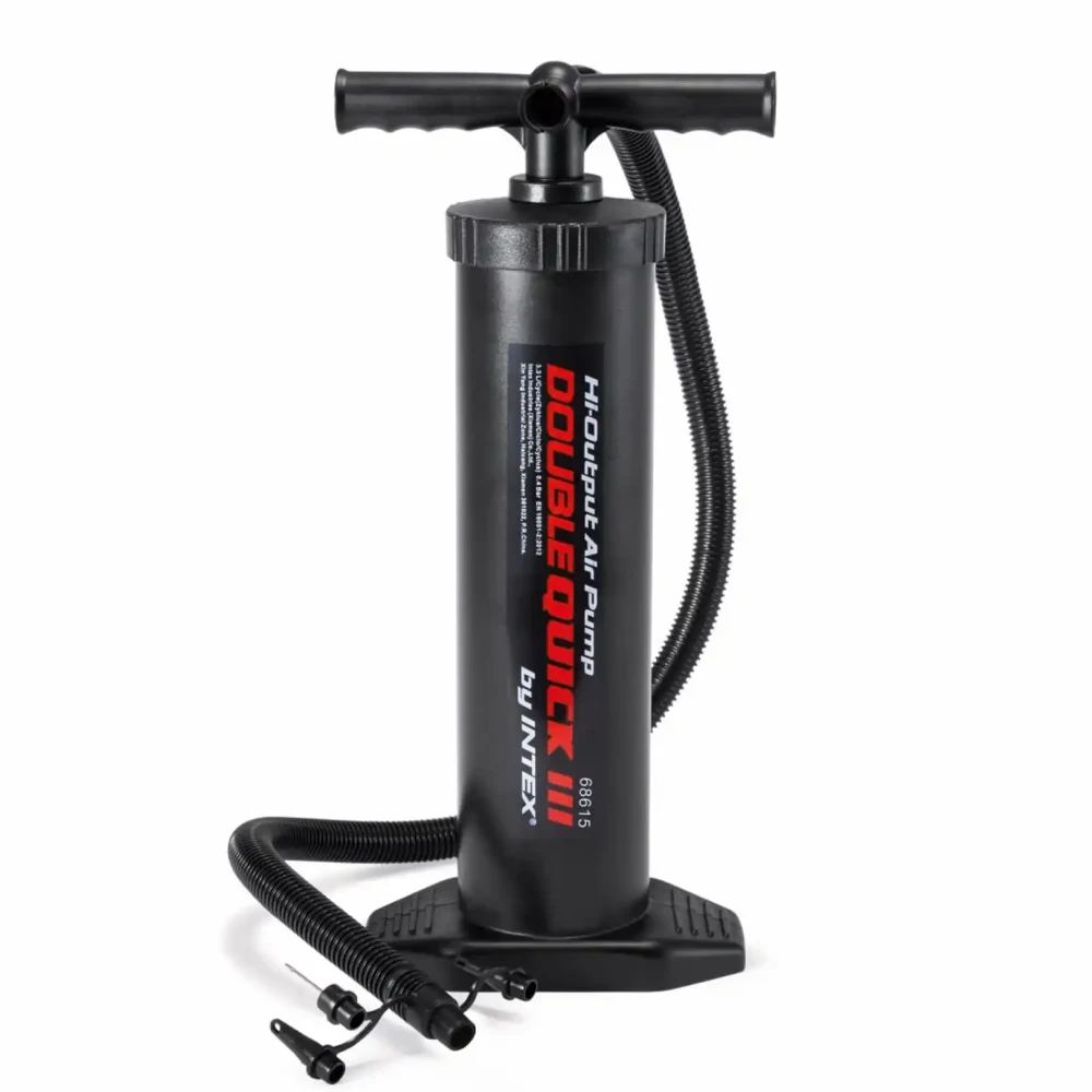 Pompă de mână Double Quick III, 48 cm, concepută pentru umflarea rapidă și eficientă a produselor gonflabile de dimensiuni medii și mari. Datorită sistemului cu dublă acțiune, pompa introduce aer atât la coborâre, cât și la ridicare, reducând semnificativ timpul necesar umflării.