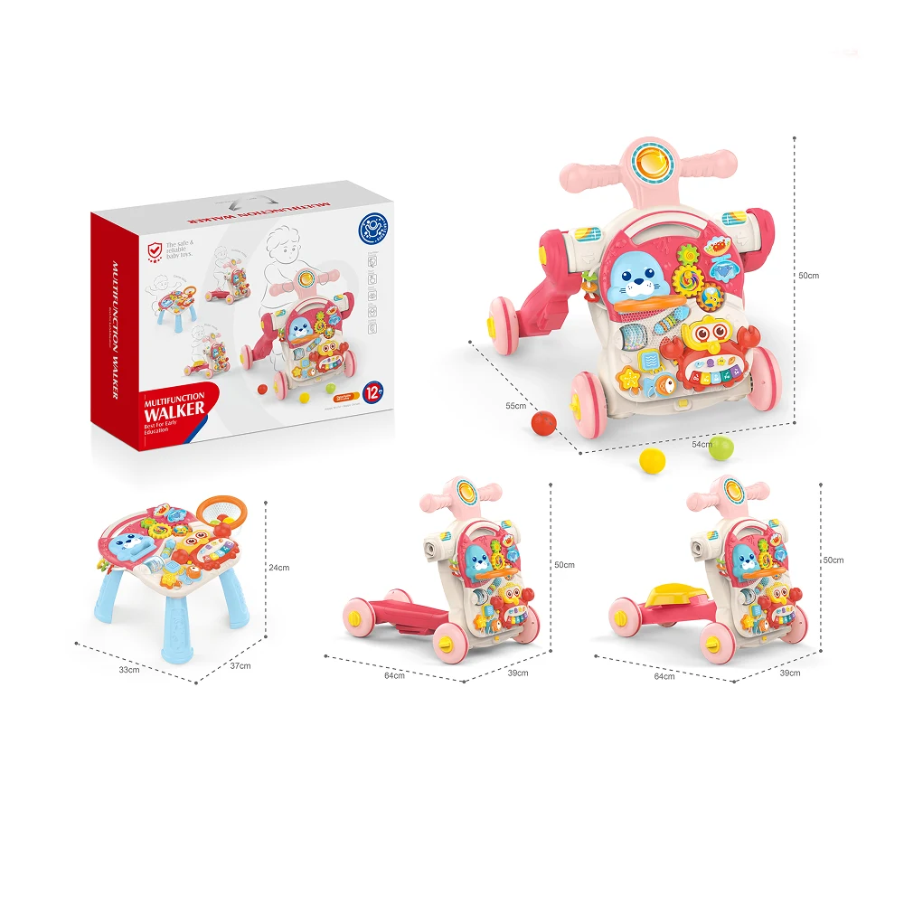 Acest premergător cu activități și muzică 4 în 1 este o jucărie educativă complexă, adaptată diferitelor etape de dezvoltare ale bebelușilor. Designul său inteligent permite utilizarea în mai multe moduri, în funcție de vârsta și abilitățile copilului, oferind atât sprijin pentru primii pași, cât și activități statice de joacă.