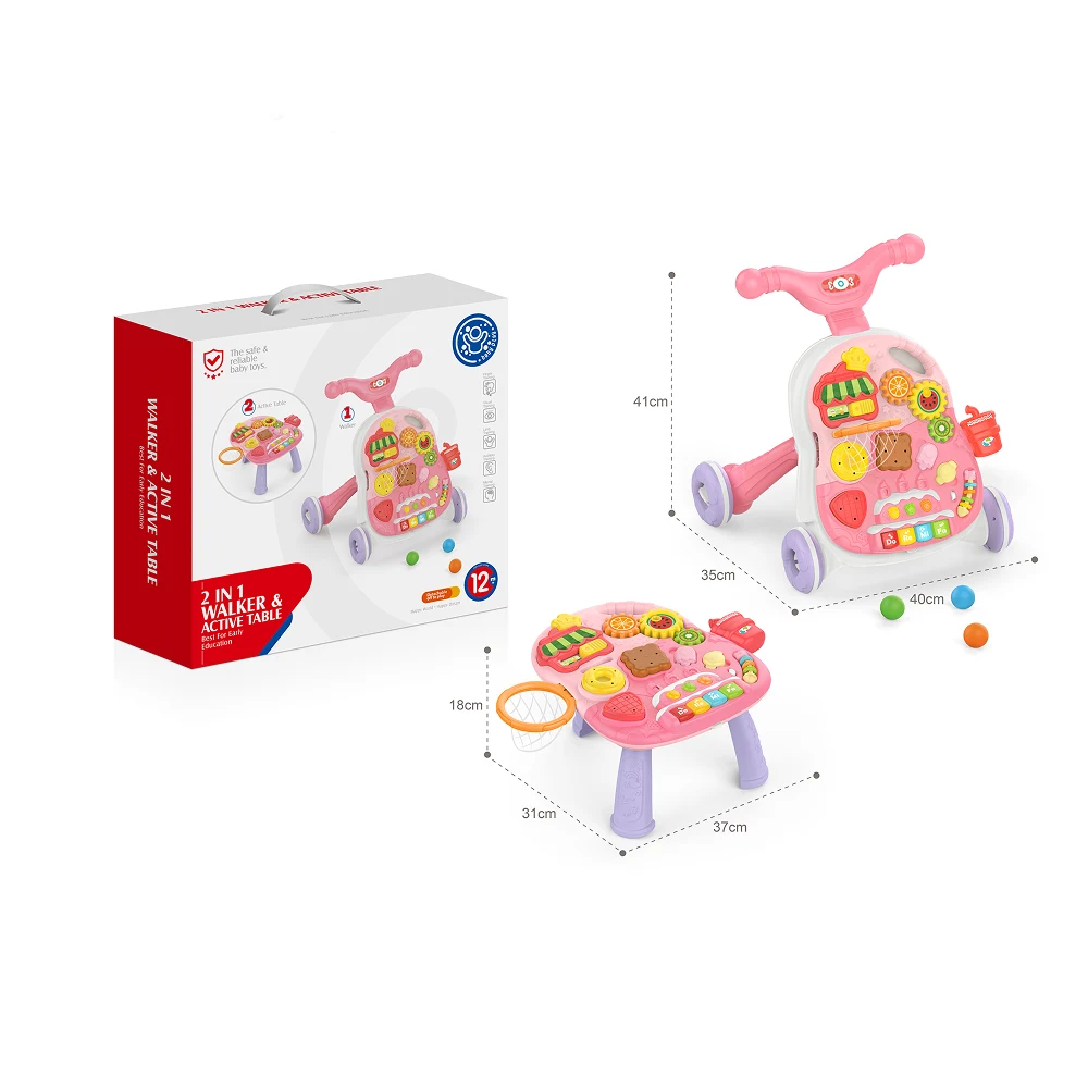 Premergător educativ 2 în 1 care se transformă ușor din masă de activități în premergător de împins, conceput pentru a susține primii pași ai copilului și dezvoltarea abilităților motorii și cognitive.