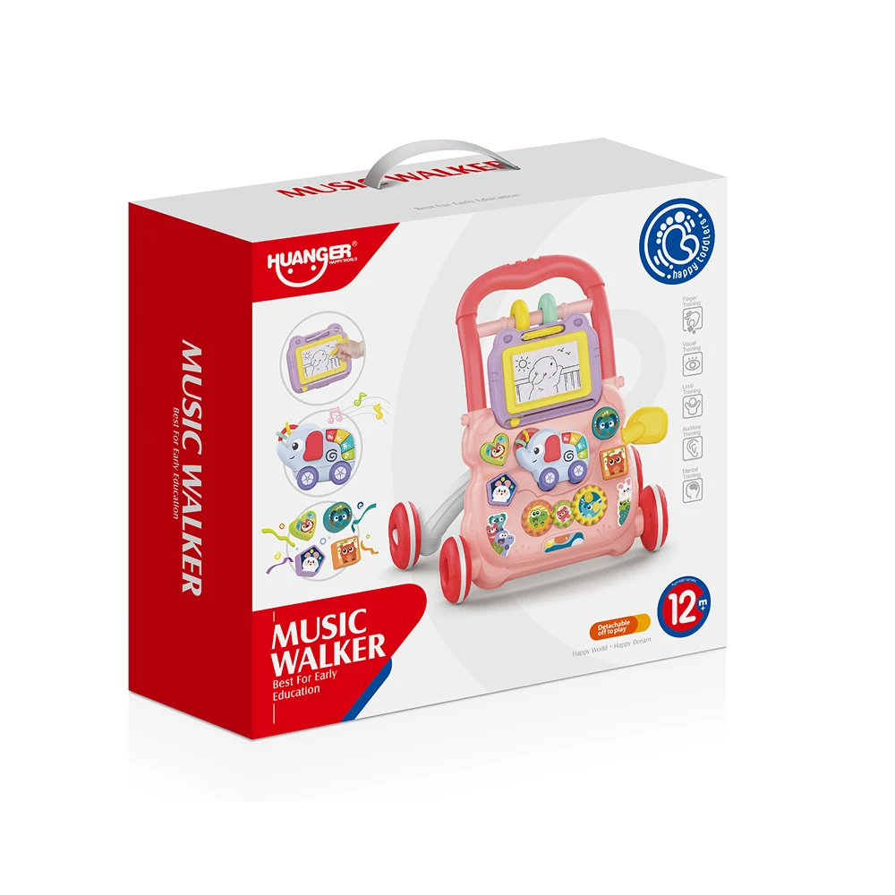 Funcțiile muzicale și elementele interactive contribuie la dezvoltarea simțurilor, coordonării mână–ochi și motricității fine. Designul ergonomic, cu mâner ușor de apucat și roți stabile, permite copilului să se deplaseze în siguranță pe suprafețe plane.