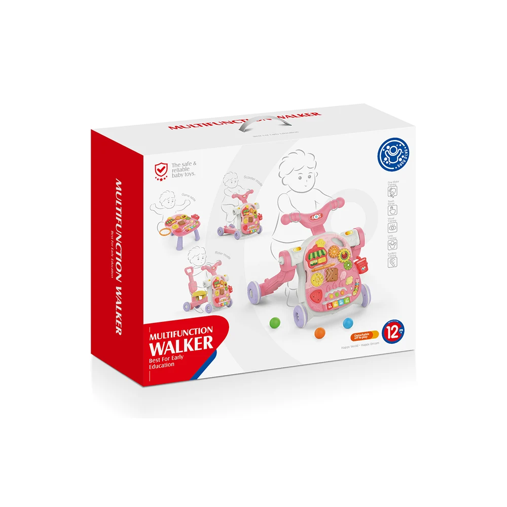 Premergător multifuncțional 4 în 1, conceput pentru a sprijini primii pași ai bebelușului și pentru a stimula dezvoltarea prin activități interactive, lumini și muzică.