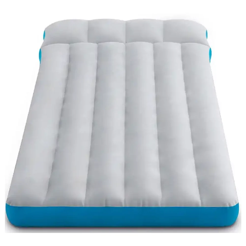 Modelul este prevăzut cu tetieră gonflabilă încorporată, care susține capul și gâtul, contribuind la o poziție mai relaxată în timpul somnului. Suprafața saltelei este structurată pentru susținere uniformă și stabilitate pe durata utilizării.
