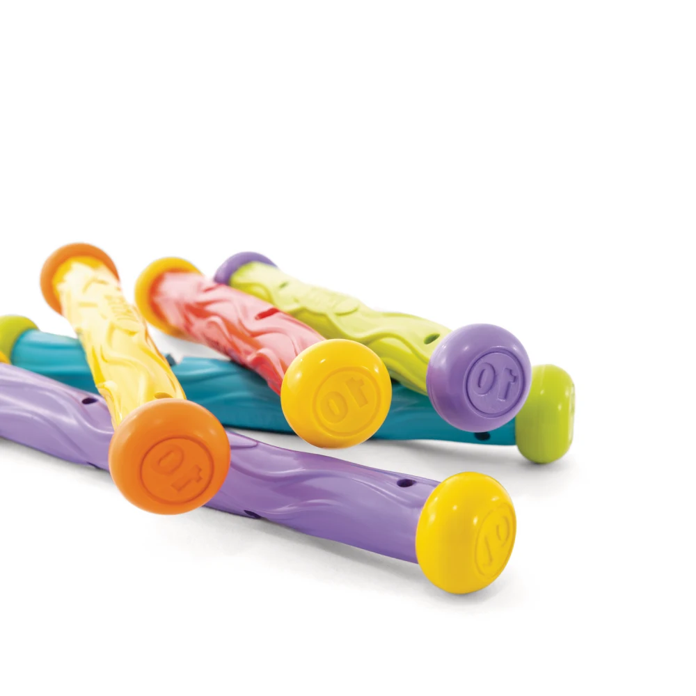 Setul de bețe pentru scufundare este conceput pentru jocuri subacvatice interactive, atât în piscină, cât și în bazine de antrenament. După aruncarea în apă, fiecare băț se scufundă și se stabilizează pe fundul piscinei în poziție verticală, încurajând copiii să înoate și să se scufunde pentru a le recupera.