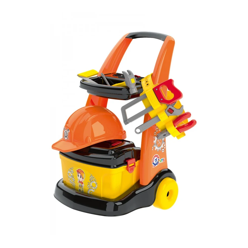 Setul de instrumente cu cărucior este conceput pentru copiii pasionați de activități practice și jocuri de rol. Cei mici pot imita diverse lucrări de reparații, organizând și transportând uneltele cu ajutorul căruciorului inclus.