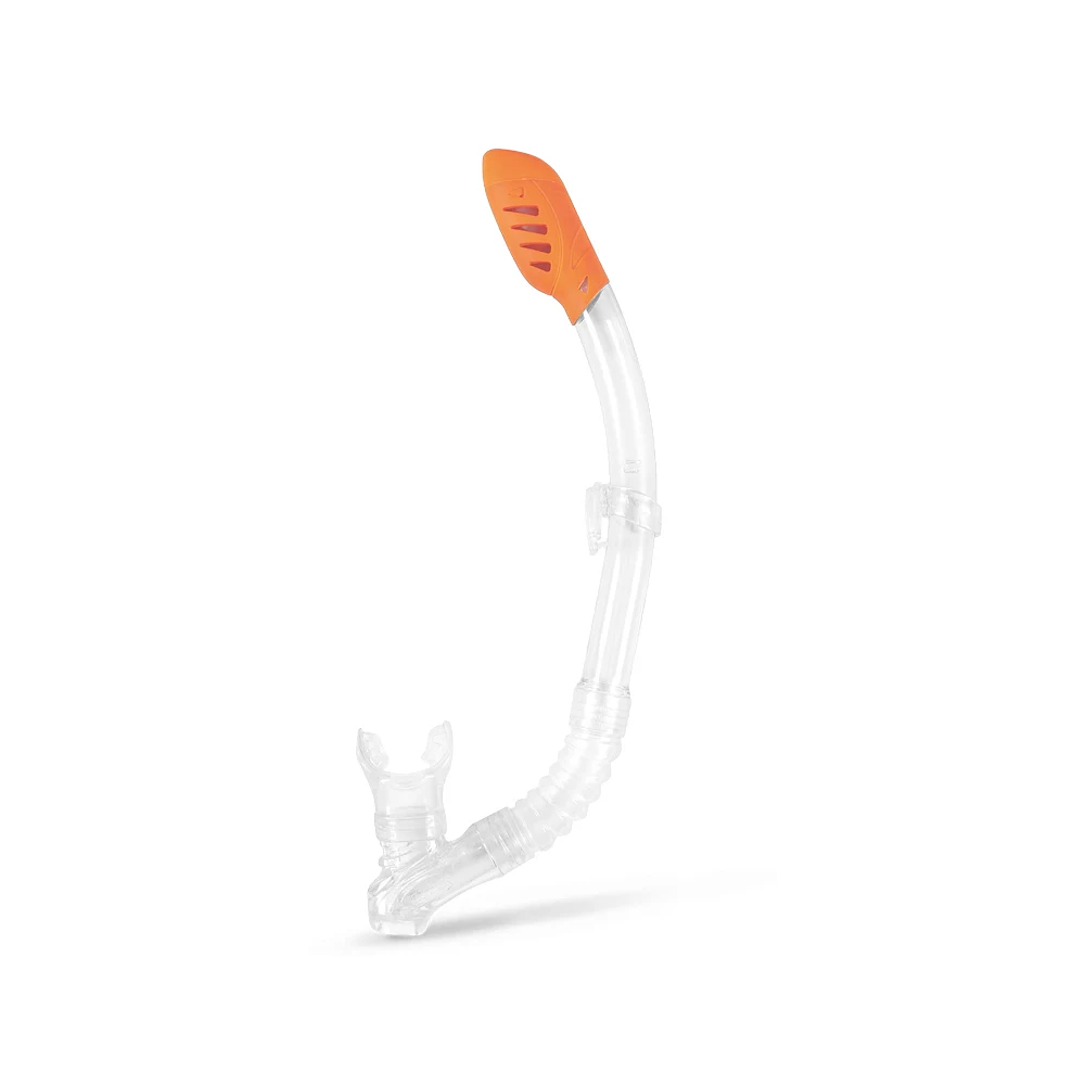 Tubul frontal permite respirația atunci când fața este scufundată, rămânând deasupra apei. Partea care se fixează în gură este realizată din material moale, pentru confort în timpul utilizării.