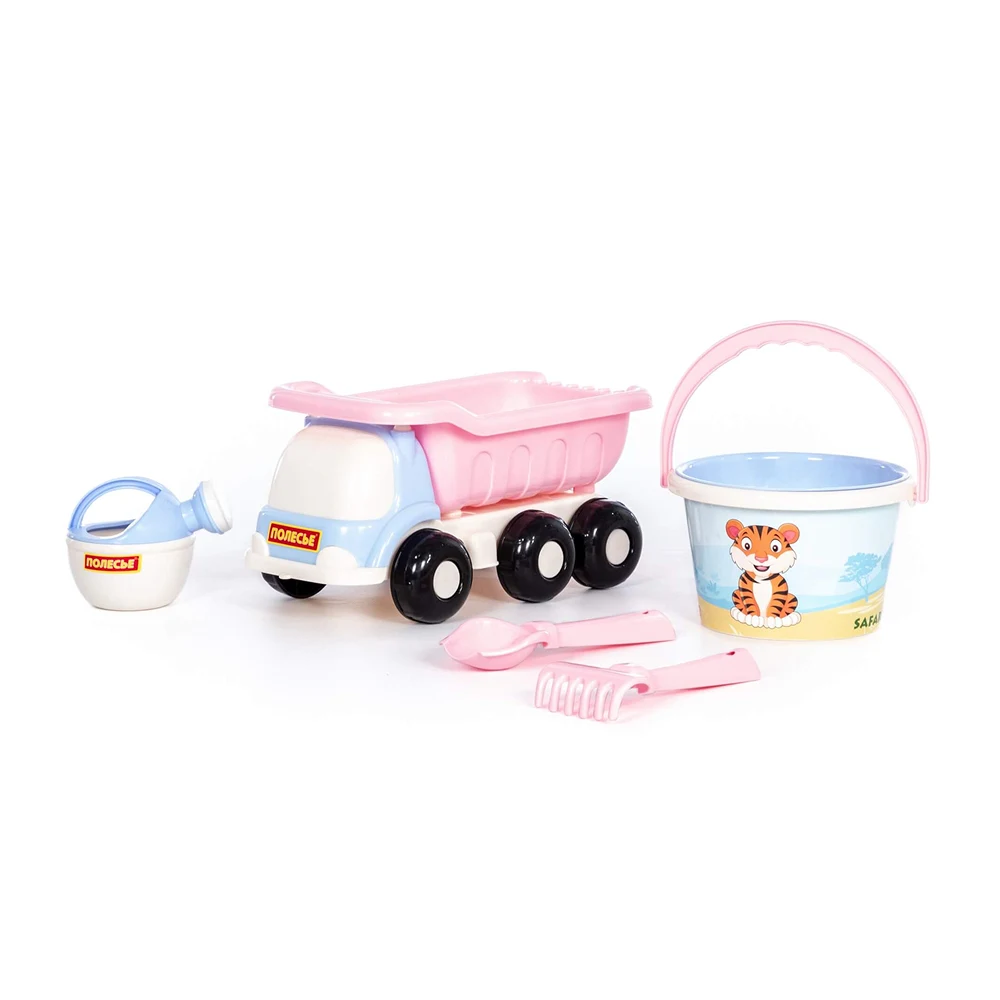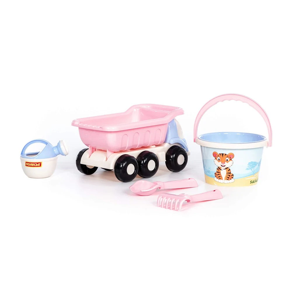 Acest set pentru nisip Safari este conceput pentru a oferi copiilor o joacă variată și distractivă în aer liber. Setul include un camion basculant, o găleată cu mâner, o stropitoare și unelte pentru nisip, permițând copiilor să sape, să transporte și să construiască diferite forme și structuri.